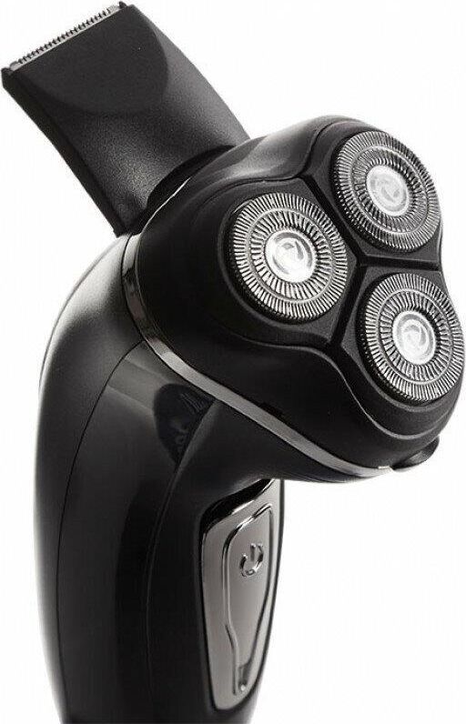 Мощность 3 Вт, Напряжение 2,4 В, Время непрерывной работы 30 минут, Время заряда аккумуляторной батареи 8 часов, Бритвенная система роторная, Температура эксплуатации +5...+35°С, Ножи из высококачественной нержавеющей стали, Красный световой индикатор работы, 2 режима работы: от электросети (110-240В~ 50Гц), от аккумулятора (Ni-Cd аккумуляторные батареи АА 2х1,2В), Цвет: черный.