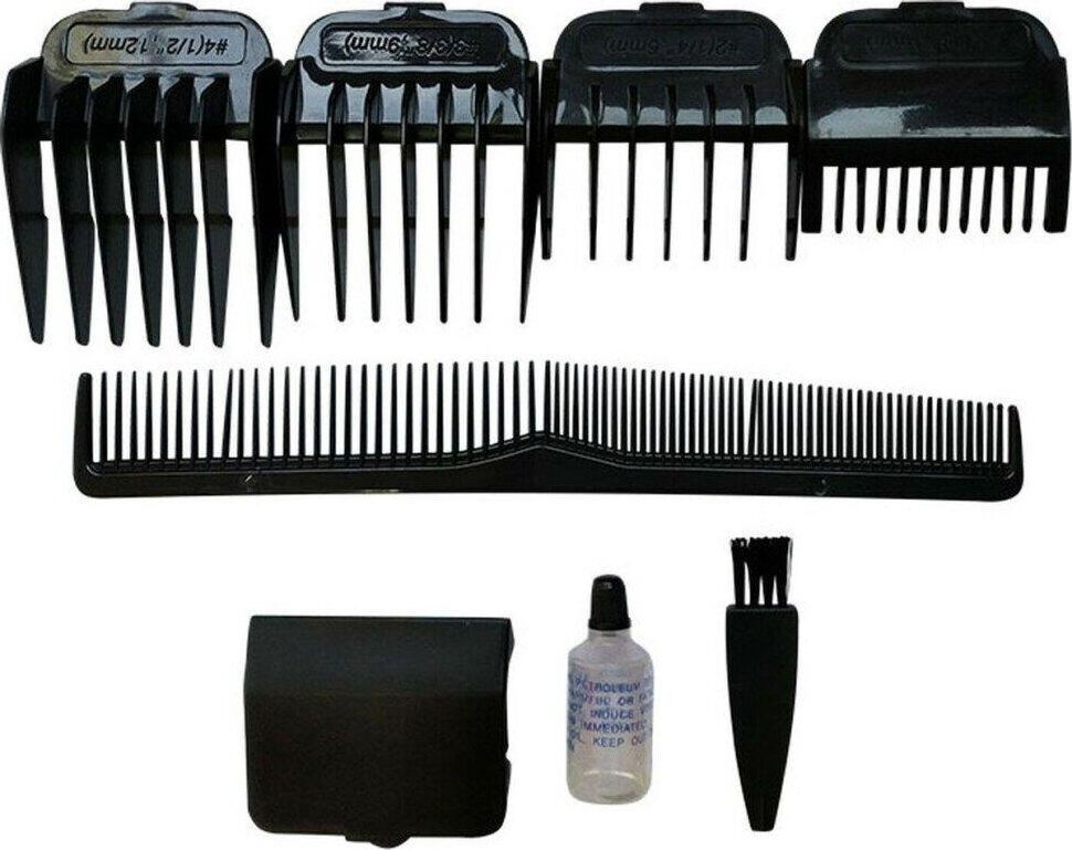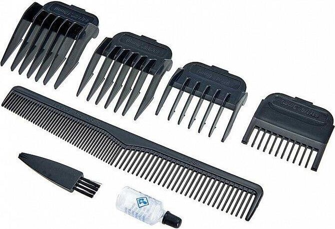 Номинальная потребляемая мощность 7 Вт, Машинка используется для стрижки натуральных волос и предназначена для бытового и аналогичного применения, Электропитание от сети 230 В ~ 50 Гц, Удобная конструкция корпуса, Цвет: синий, Регулировка длины срезаемых волос, 4 съемных гребня: 3, 6, 9, 12 мм, Лезвия из нержавеющей стали, Защитная крышка для лезвий, Щеточка для чистки лезвий, Масленка для смазки лезвий, Расческа, Петелька для подвешивания.
