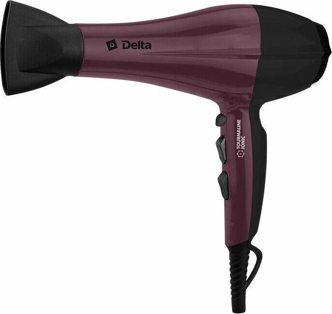 Фен DELTA DL-0937 черный с бордо.Номинальная потребляемая мощность 2200 Вт Турмалиновая ионизация снимает статическое электричество с волос, облегчая их расчесывание и сохраняя внутреннюю влагу Прорезиненное противоскользящее покрытие Съемный воздухозаборный фильтр Концентратор Петелька для подвешивания Два режима мощности потока воздуха Три режима температуры потока воздуха Функция «Холодный воздух» Защита от перегрева
