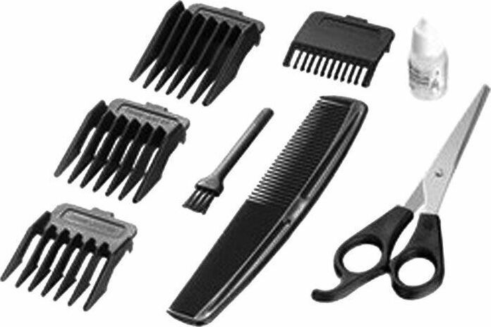 Номинальная потребляемая мощность 10 Вт. Электропитание от сети 220В - 50Гц. Машинка используется для стрижки натуральных волос и предназначена для бытового и аналогичного применения. Цвет: черный с красным. Вставка на корпусе с противоскользящим покрытием. Удобная конструкция корпуса. Лезвия из нержавеющей стали. Регулировка длины срезаемых волос. Четыре съёмных гребня: 3, 6, 9, 12 мм. Защитная крышка для режущих лезвий. Защитное приспособление для шнура. Расческа. Ножницы. Масленка для смазки лезвий. Щетка для чистки лезвий.