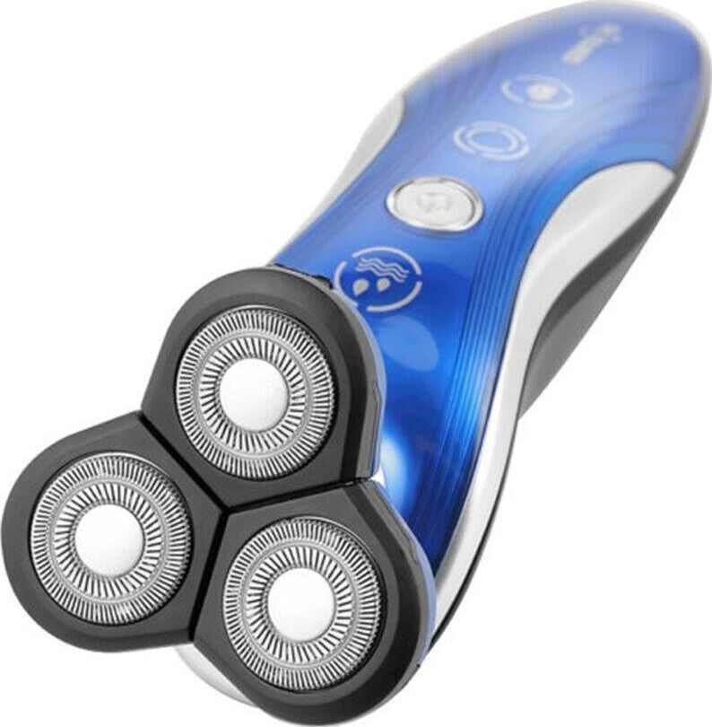 Мощность 3 Вт. Роторного типа. 3D плавающая бритвенная система. Мощный мотор. Работает от сети и от аккумулятора. Время непрерывной работы 50 мин. Полная зарядкав течение 5 часов. Сухое и влажное бритье. Водостойкий корпус IPX7. Особая заточка лезвий. LED индикатор. Щеточка для очистки. Батарея Ni-CD2 * 2/3AA450mAH, 2.4v.