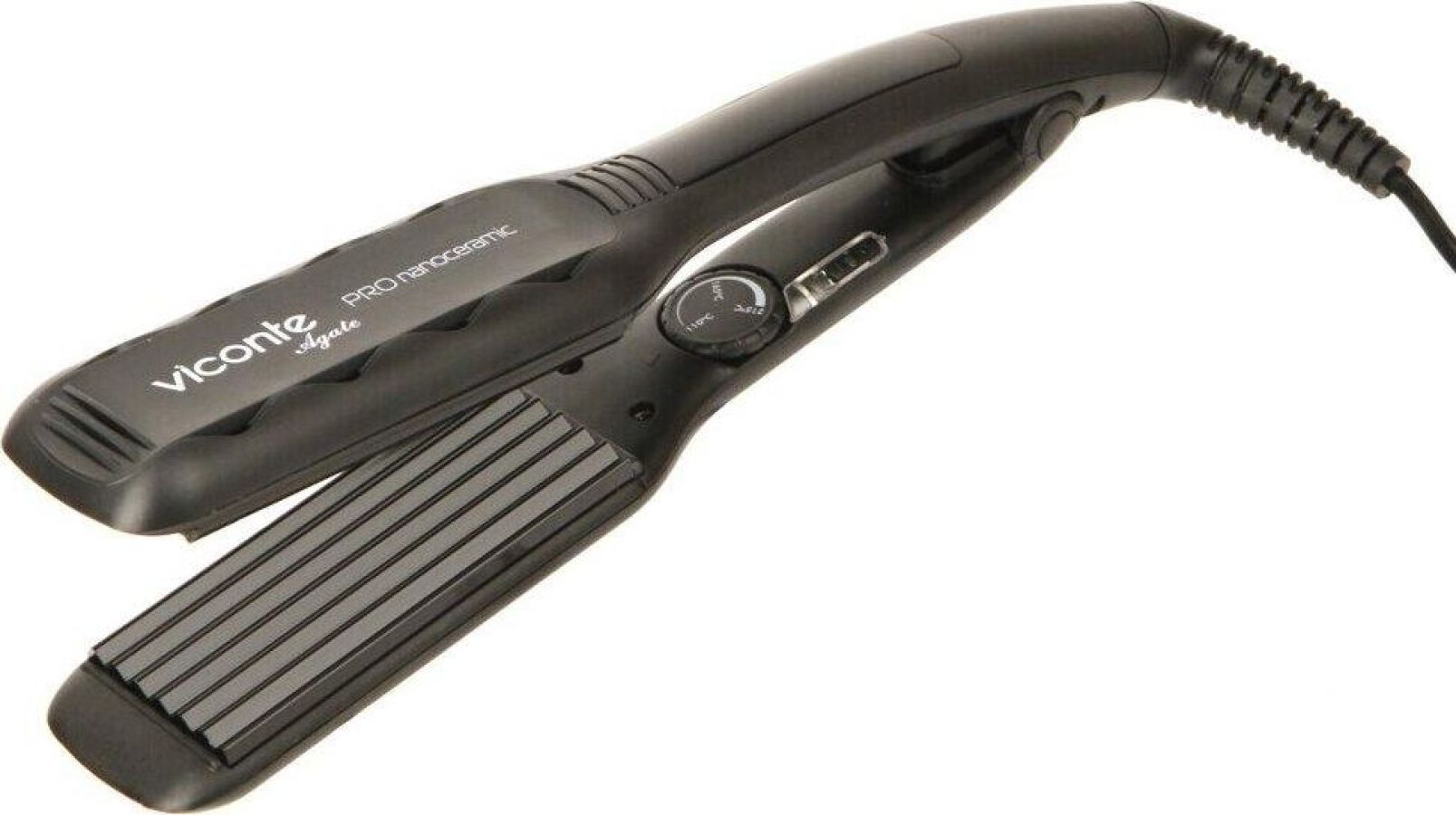 Щипцы-гофре, керамические плавающие пластины, 9 температурных режимов ( от 110 до 215 0С), функция автоотключения через 60 мин работы , время нагрева до оптимальной и стабильной температуры – 2-3 минуты, ширина пластин 45 мм, вращающийся шнур, мощность 85 w.