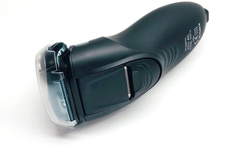 акк/сетевая, 3-х ножевая. Питание 220В 50Гц. Мощность - 4Вт, время зарядки - 8ч, работа от аккумулятора или от сети, самозатачивающиеся лезвия, система объемного бритья; влагозащищенная, автономный режим работы 45 мин, откидной триммер.