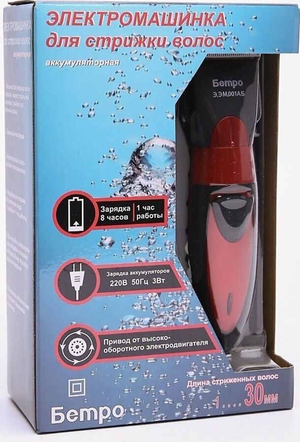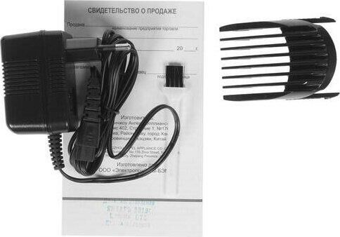 Предназначена для стрижки волос и бороды любой длины. Работа от встроенного аккумулятора, 1 час автономной работы после 1-й зарядки. Нерж. стальные лезвия. Высота стрижки регулируется с помощью вращающегося диска на корпусе машинки (5 уровней). Является влагозащищенной и может очищаться от волос под струей воды, а также работать в помещениях повышенной влажностью. Зарядка аккумуляторов от сети 220В, номинальная потребляемая мощность 3 Вт.