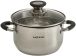 Кастрюля из высококачественной нержавеющей стали серии Style. Объем: 2,7 литра, Диаметр: 18 см, Стеклянная крышка с отверстием для отвода пара, Отверстия для слива разного диаметра на ободе крышки с двух сторон, а также специальная форма краев кастрюли позволяют легко сливать жидкость без снятия крышки и использования дуршлага, Термостойкое силиконовое покрытие ручек, Мерная шкала внутри корпуса, Может быть использована на всех типах кухонных плит, включая индукционные, Подходит для мытья в посудомоечной машине.