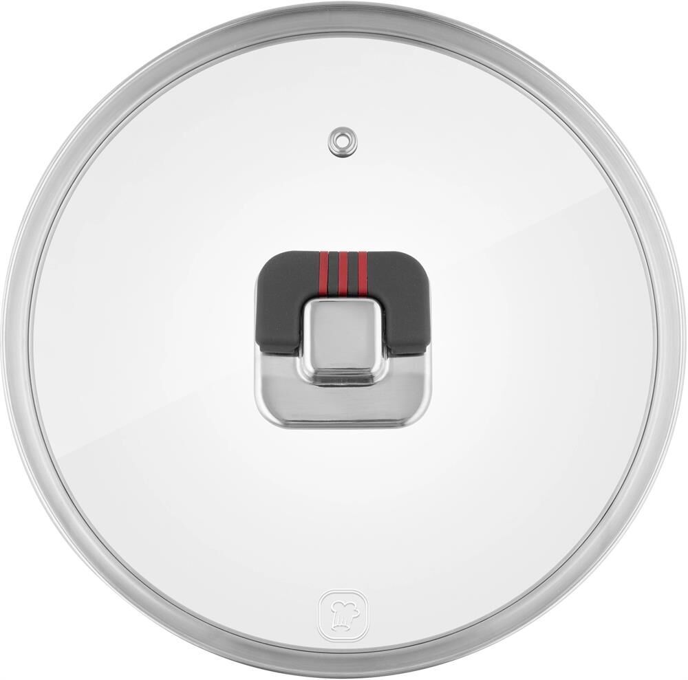 Крышка. Диаметр: 20 см, Форма крышки: круглая, Материал крышки: стекло, Материал ободка крышки: нержавеющая сталь, Материал ручки: бакелит/силикон, Цвет крышки: прозрачный, Цвет ручки: серый, Клапан для выпуска пара, Использование в посудомоечной машине.
