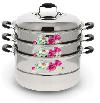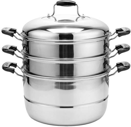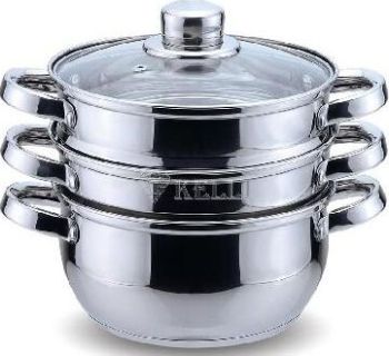 Мантоварка Трехуровневая 26 см Высокачественная нержавеющая сталь Утолщенные стенки и дно Зеркальная полировка Ненагревающиеся бакелитовые ручки прозрачная крышка позволяет следить за процессом приготовления Сохраняет все полезные свойства продуктов. Подходит для посудомоечной машины.