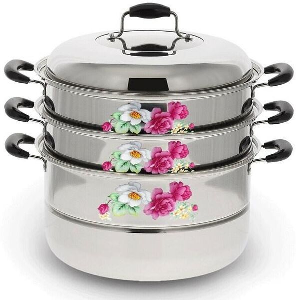 Мантоварка Трехуровневая 26см Высокачественная нержавеющая сталь Зеркальная полировка Ненагревающиеся бакелитовые ручки прозрачная крышка позволяет следить за процессом приготовления Сохраняет все полезные свойства продуктов