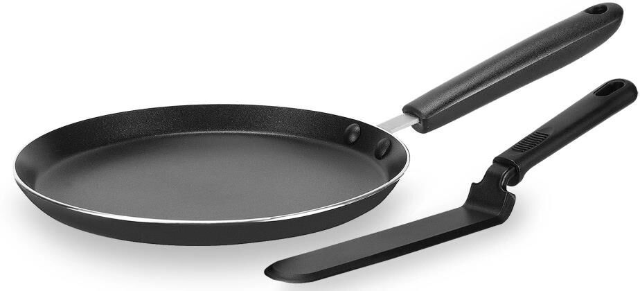 Сковорода блинная с лопаткой. Диаметр 26 см, материал посуды: алюминий, удобная ручка из бакелита.