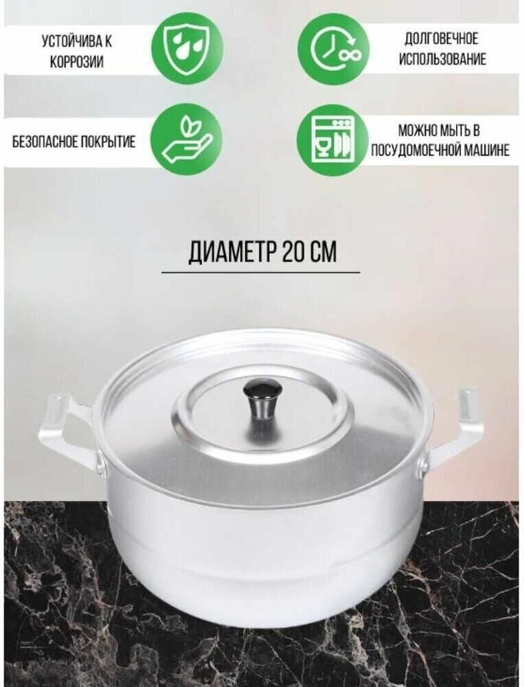 Алюминиевая кастрюля объемом 3 л выполнена в обновленном дизайне - сферическая форма удачно дополнена элегантной канавкой на боковой поверхности. Кастрюля изготовлена из пищевого алюминия, проста в уходе, быстро и равномерно нагревается. Ее преимуществами являются легкость в уходе, высокая устойчивости к царапинам, возможность использования металлических аксессуаров. Кастрюля поставляется с металлической крышкой соответствующего диаметра. Данное изделие производится на заводе "Демидовский" в г.