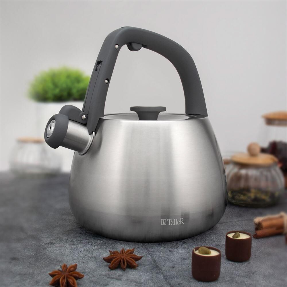 Чайник со свистком Reynard 2,2 л Материал : нержавеющая сталь, нейлоновая ручка с покрытием софт-тач. Рекомендации: подходит для всех типов плит, кроме индукционной Толщина стенок 0.6 мм Толщина дна 0.6 мм Рекомендуется ручное мытье