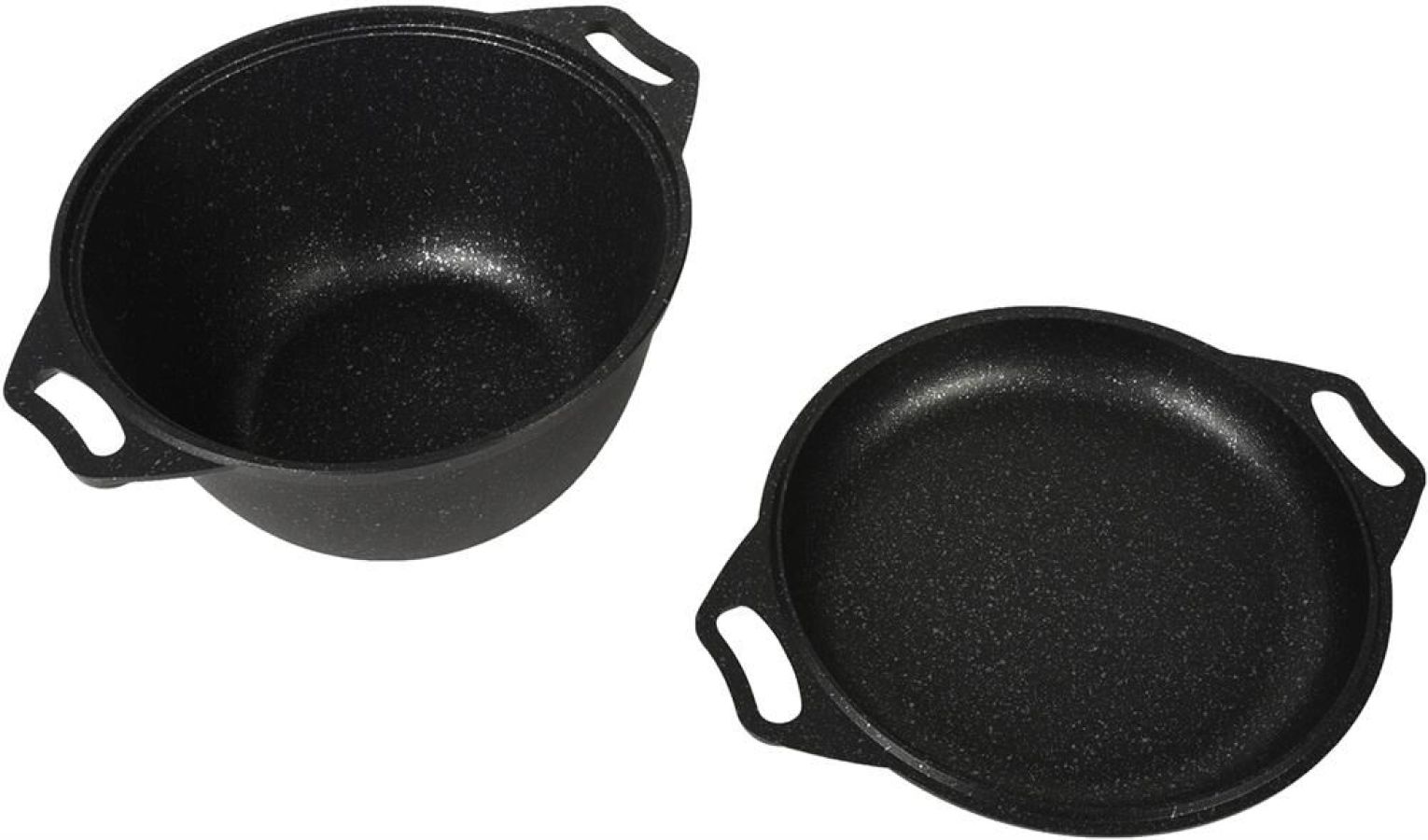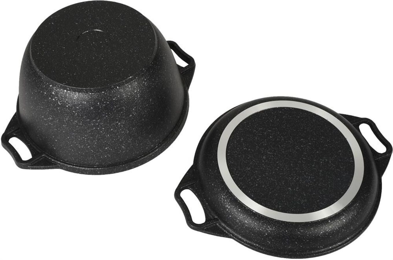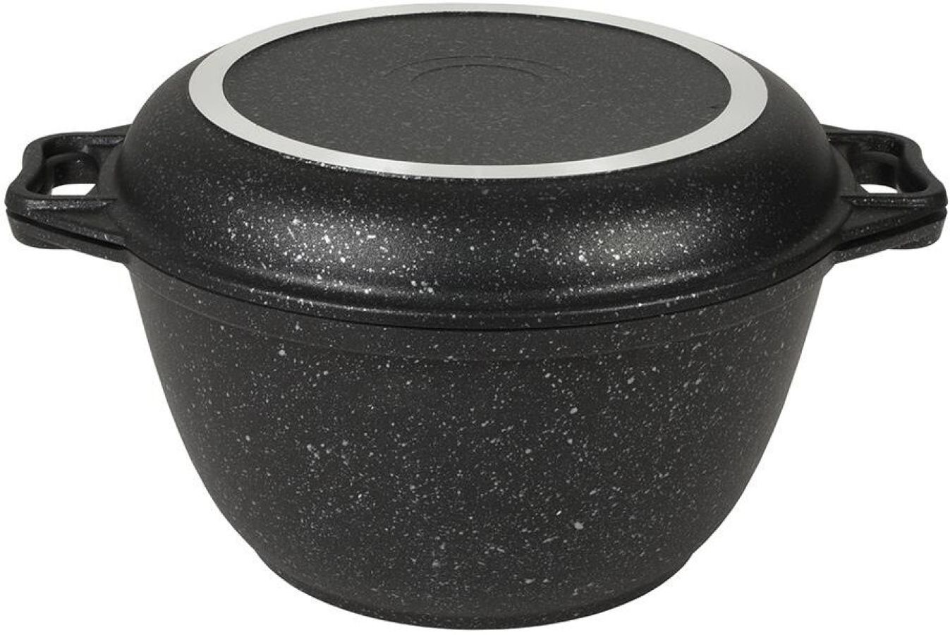 Казан с крышкой-сковородой " Kukmara" изготовлен из литого алюминия и покрыта инновационным антипригарным мраморным покрытием нового поколения на водной основе, усиленным сверхтвердыми частицами минералов. Особенности казана с крышкой-сковородой " Kukmara": значительная толщина стенок и дна исключает деформацию корпуса казана, гарантирует ее долговечность, обеспечивает необходимую прочность покрытия; высокопрочное антипригарное покрытие на водной основе, усиленное сверхпрочными минеральными
