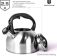 Чайник. Корпус: нержавеющая сталь, толщина 0,3 мм, высота 11 см Внешний вид: матовый лак Внутренняя отделка: матовый лак Крышка: крышка из нержавеющей стали Ручка: нейлоновая ручка