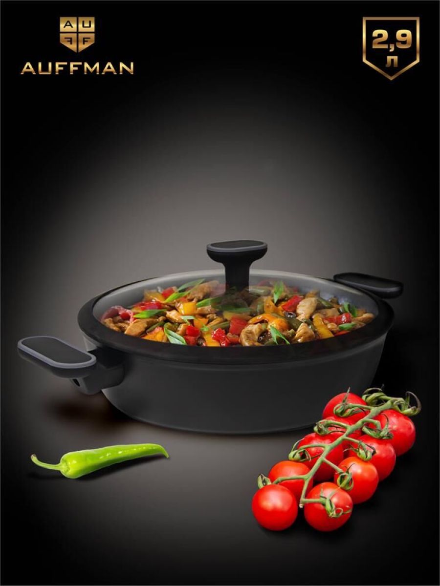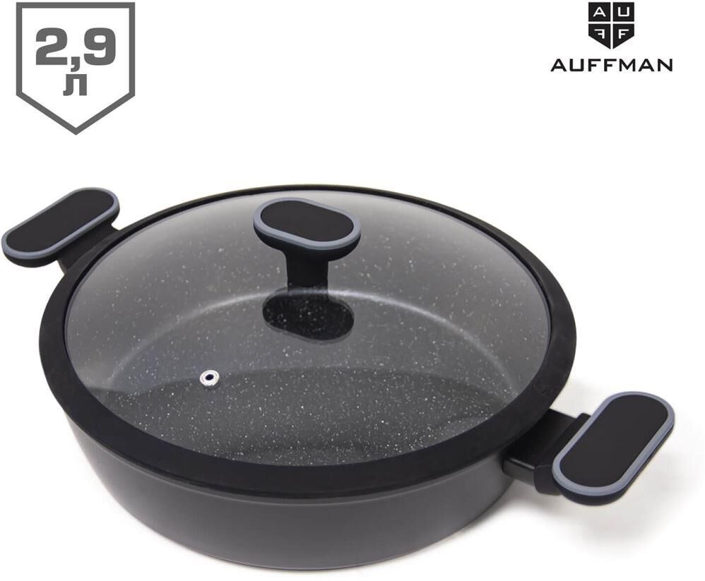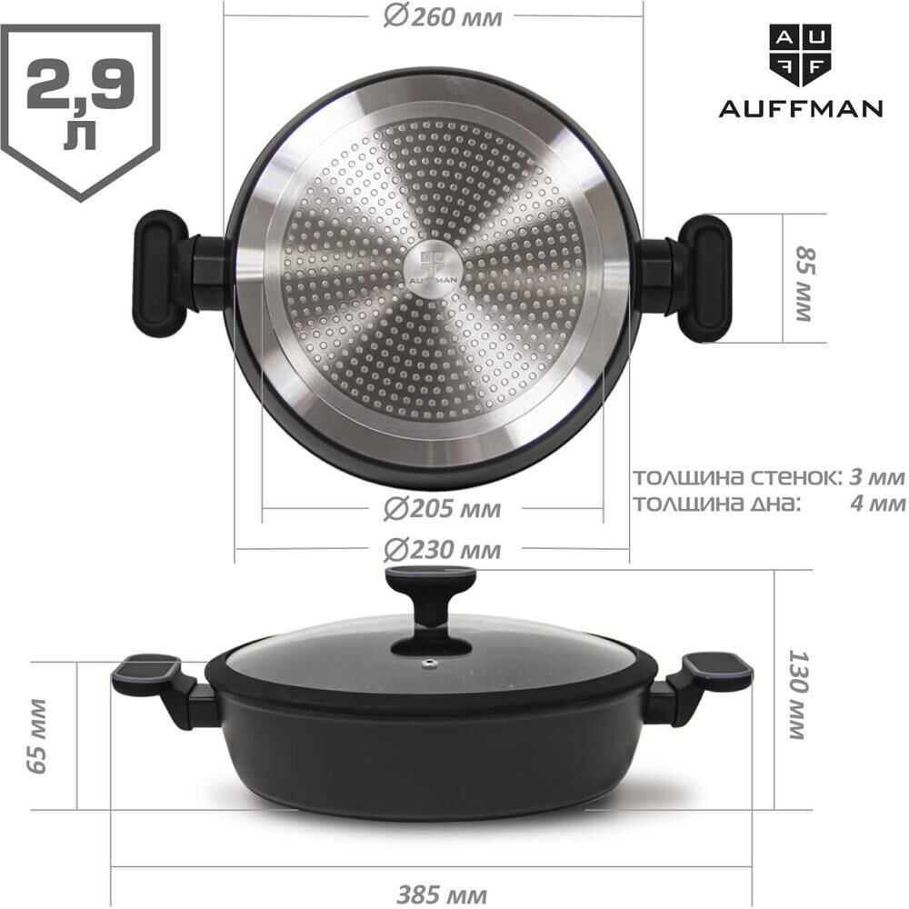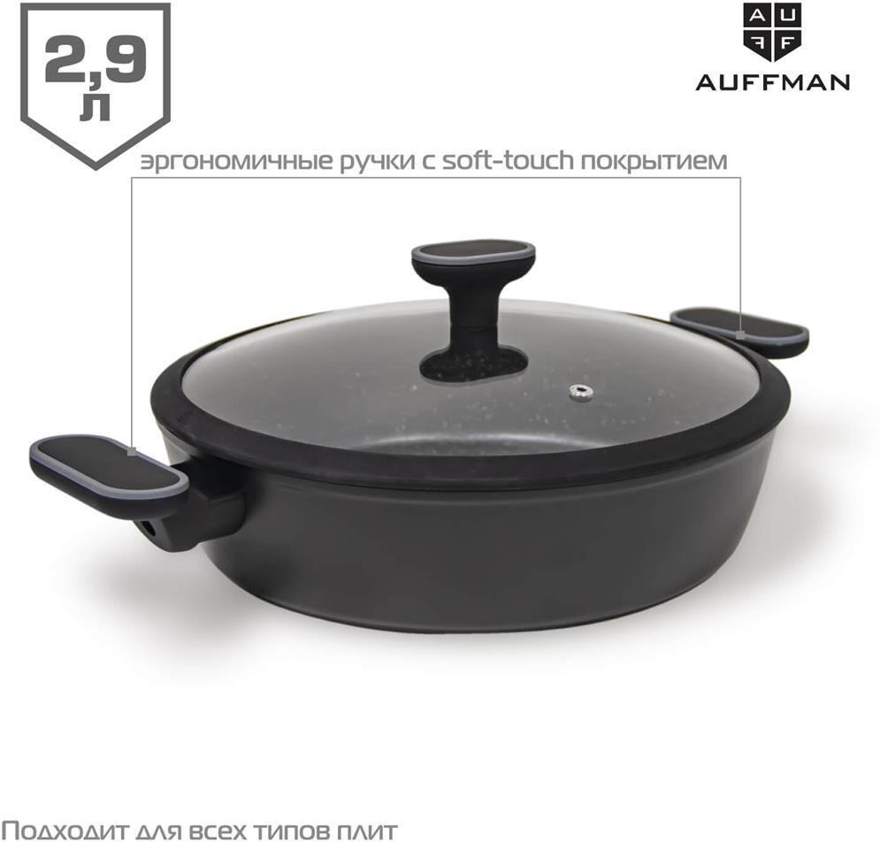 Жаровня.Кованый алюминий Толщина края 4мм, толщина изделия 3мм Индукционное дно Ручка с софт-тач покрытием Внутри антипригарное покрытие с белыми точками, 2 слоя. Снаружи высокотемпературное покрытие