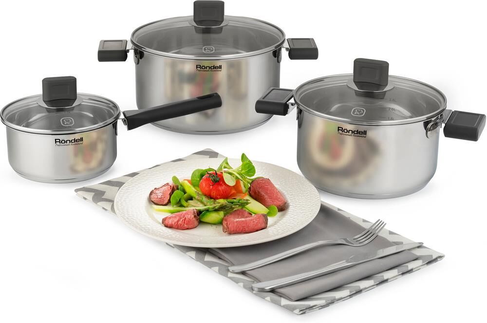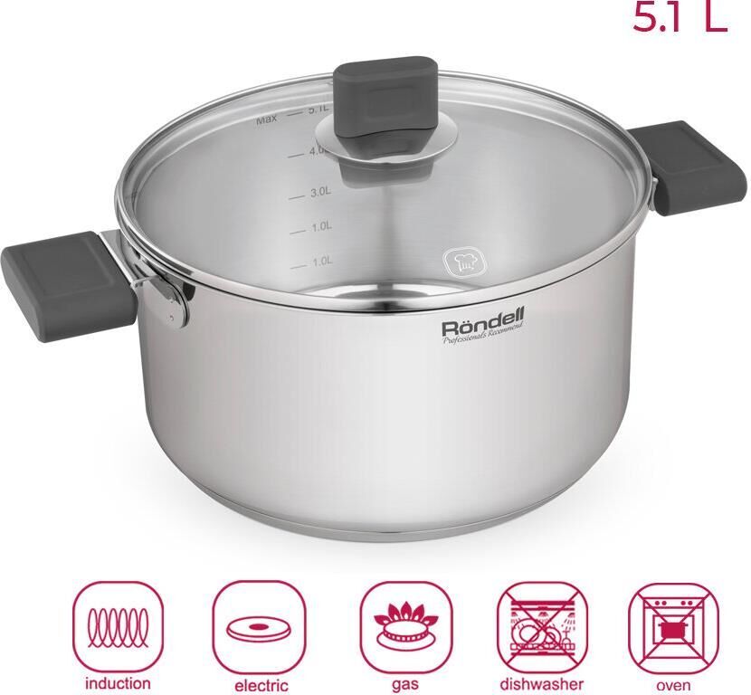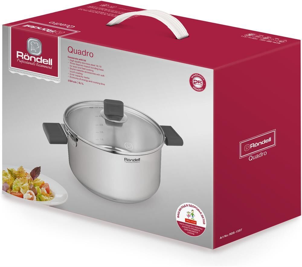 Кастрюля Rondell Quadro RDS-1597 5.1л. d=24см (с крышкой) стальной