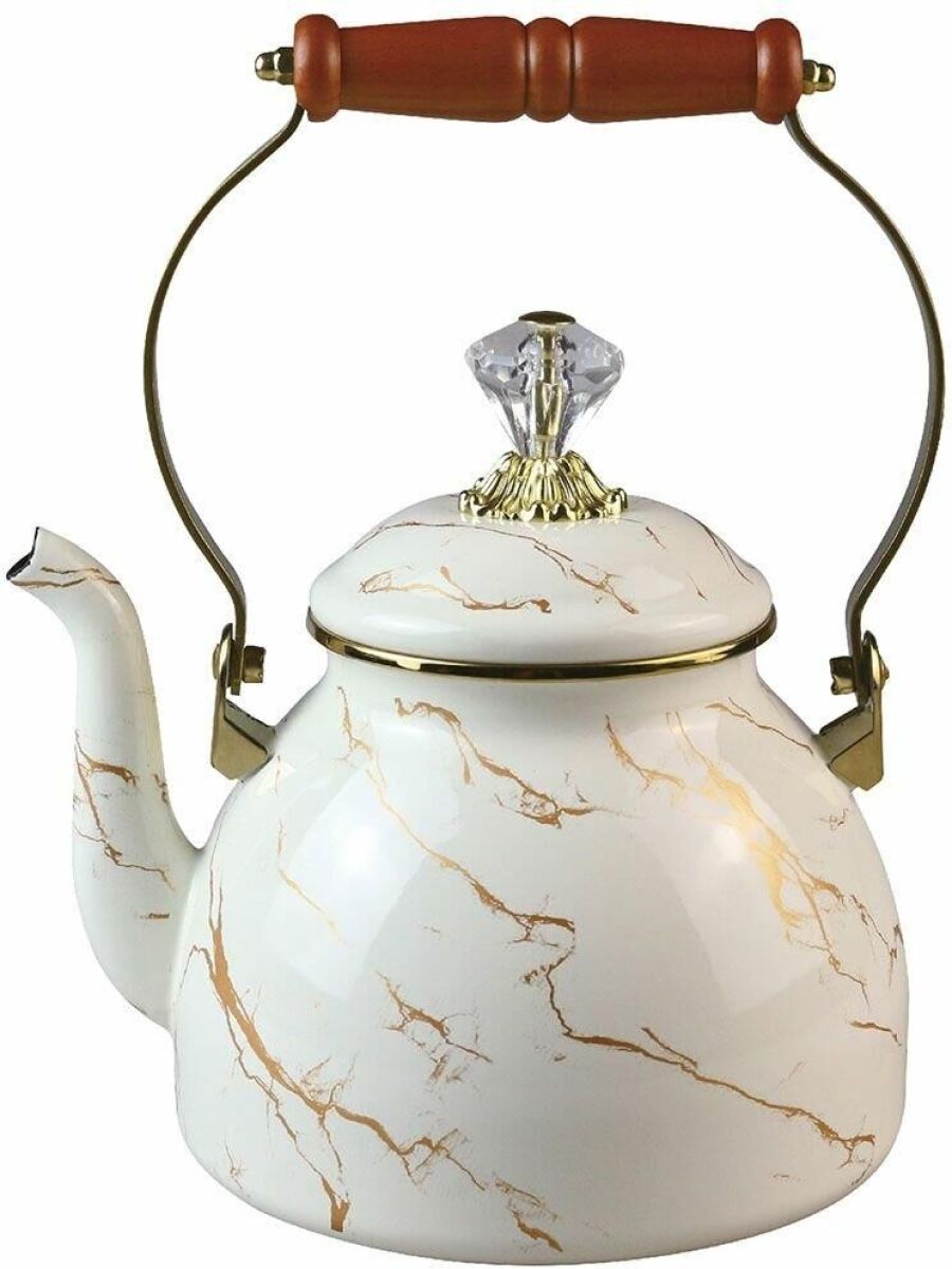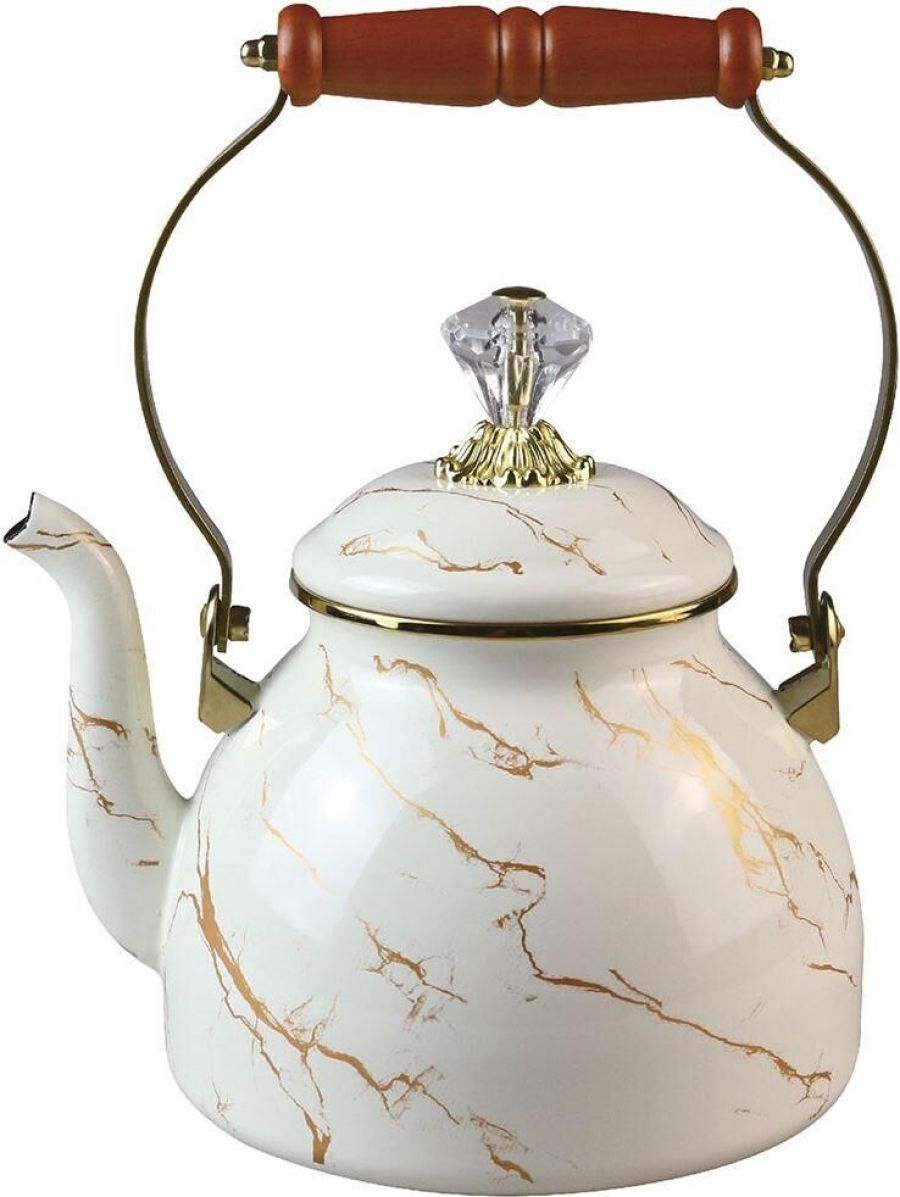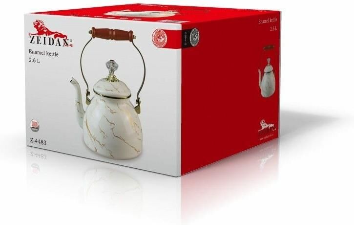 Чайник ZEIDAN Z-4483 2,6 л Marble, Чайник 2,6 л, эмалированная сталь, комбинированная ручка, "под золото", внутреннее эмалированное покрытие, ручка на крышке «кристалл», наружное покрытие - эмаль с рисунком. Подходит для индукции. Подарочная упаковка.