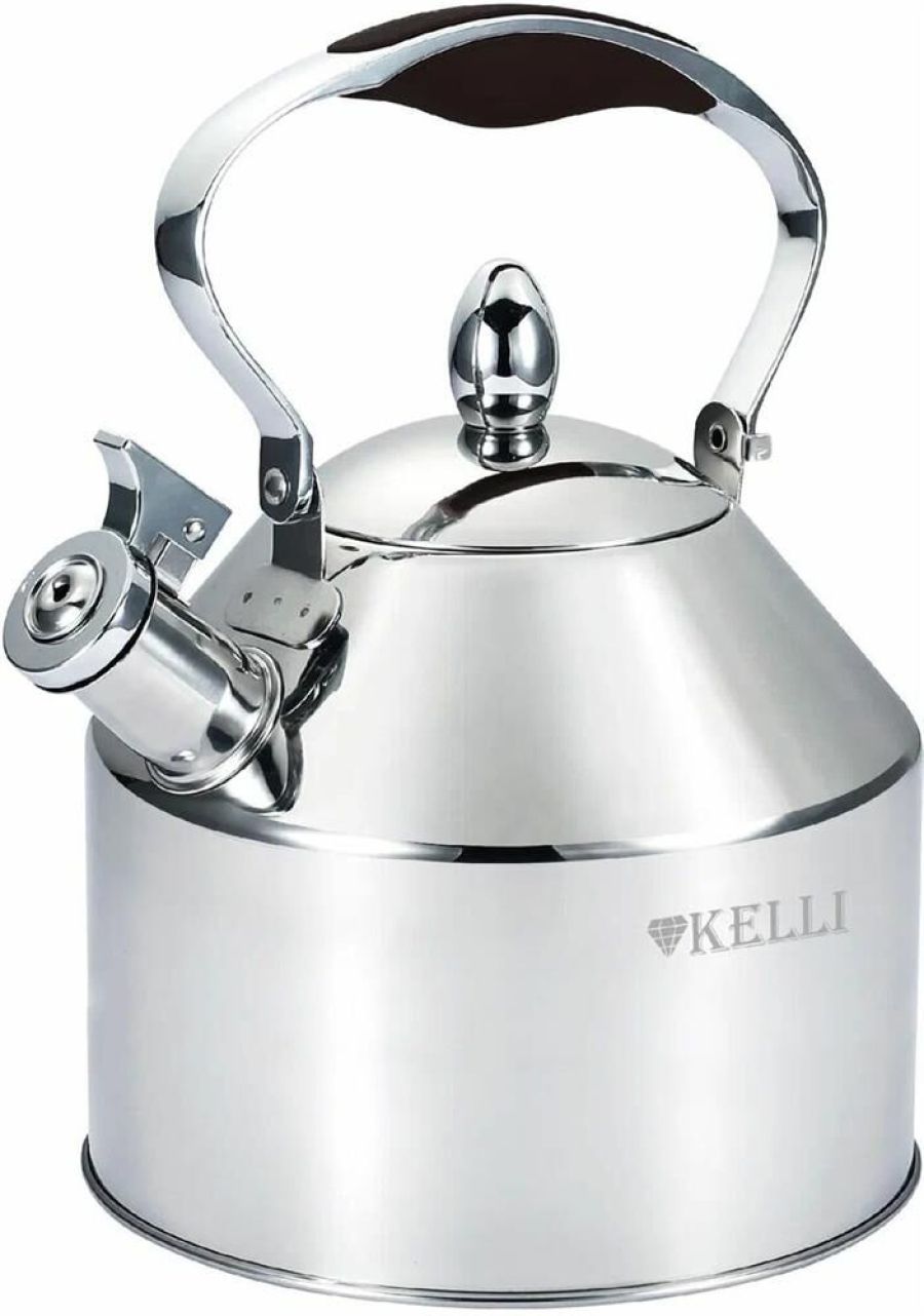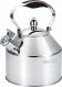 Металлический чайник со свистком Объем: 3,5 л Высококачественная нержавеющая сталь Капсульное дно Силиконовая ручка не нагревается Удобная крышка носика со свистком Свистит при закипании Зеркальная полировка Подходит для всех видов плит