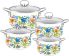 Комплектация: 4 стеклянные крышки, 4 эмалированные кастрюли