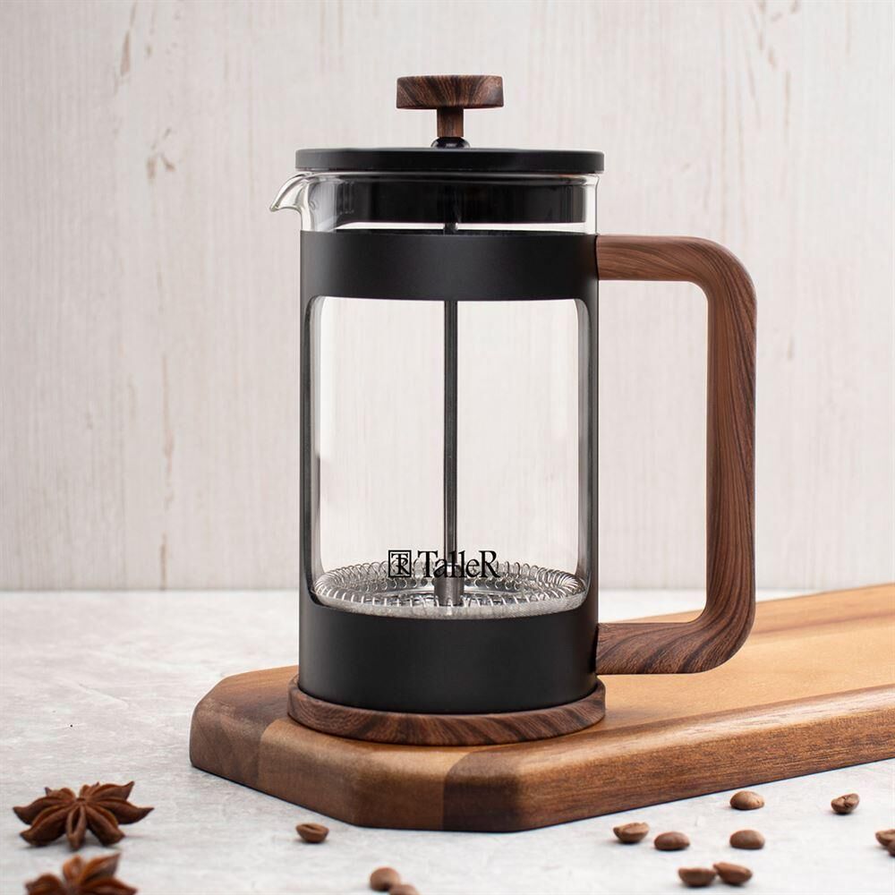 Комплектация: Френч-пресс TalleR TR-32341 1000 мл , Особенности посуды: Мерные деления, Ненагревающиеся ручки, Крышка в комплекте