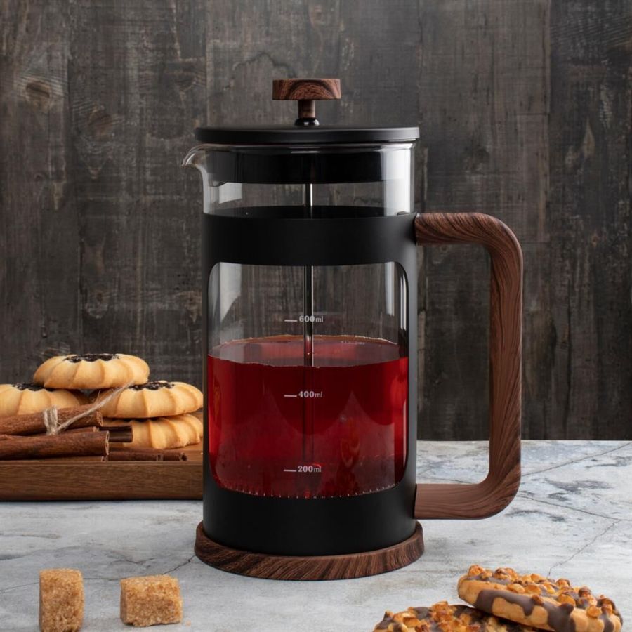 Френч-пресс Jennet из боросиликатного стекла 1000 мл/ крышка сталь • Термостойкое боросиликатное стекло, высококачественная нержавеющая сталь, пищевой пластик • Идеален для приготовления кофе, чая, тонизирующих и расслабляющих напитков • Удобная нен