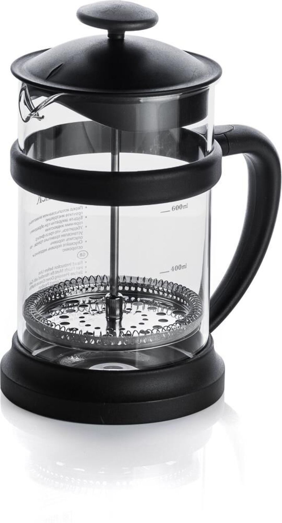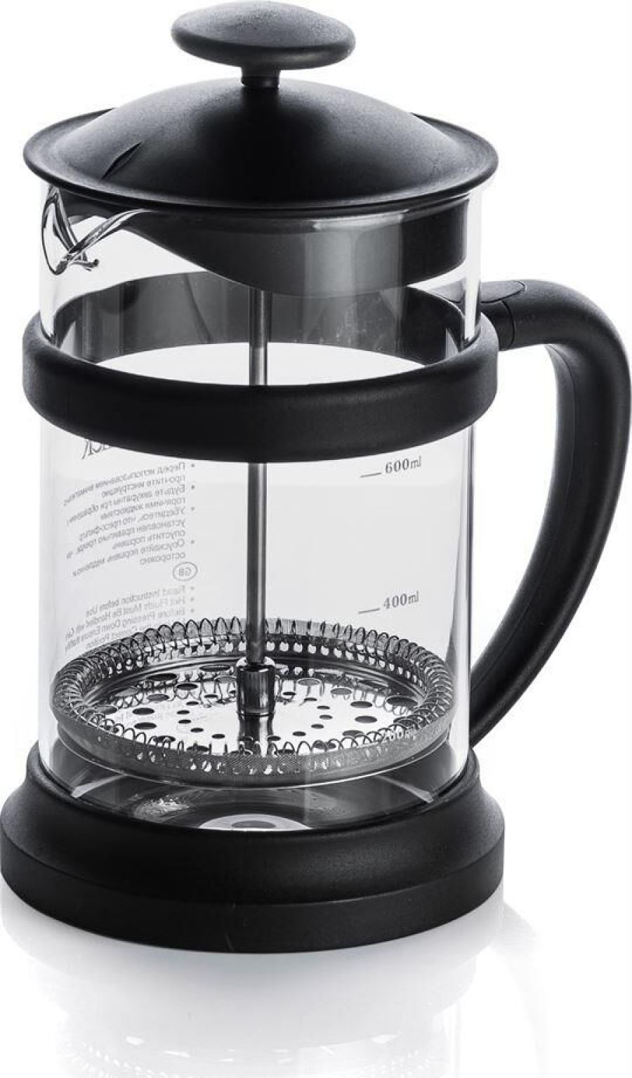 Френч-пресс 800 мл, Alfie Комплектуется ложкой Материалы: боросиликатное стекло, нержавеющая сталь, пластик. Толщины: стекло - 2,0 мм, детали пресс-фильтра - 0,3 мм Можно мыть в посудомоечной машине Упаковка - цветная коробка