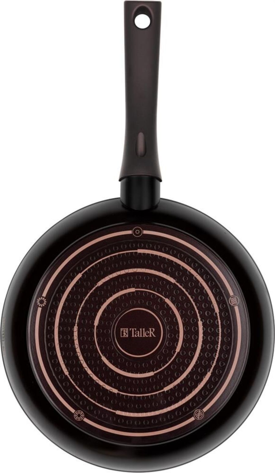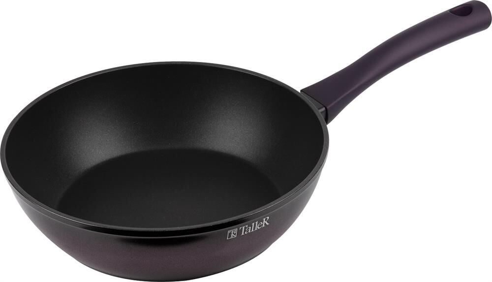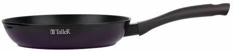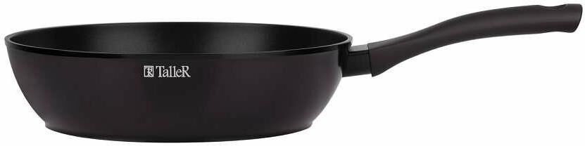 Сковорода глубокая TalleR TR-44100, верхний диаметр 24 см, диаметр дна 18,5 см, высота 6,8 см. Состав: кованый алюминий. Толщина дна 3.3 мм, толщина стенок 3 мм. Двухслойное антипригарное покрытие Whitford Xylan. Ручка с покрытием софт-тач. Подходит для