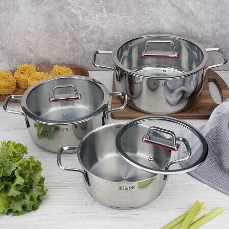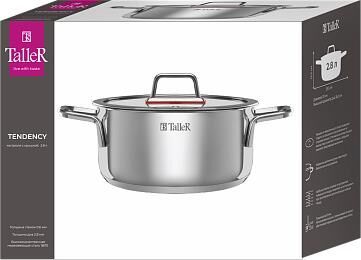 Кастрюля с крышкой Tendency 2,8 л. Материал - нержавеющая сталь. Толщина стенок - 0,6 мм, толщина дна - 2,8 мм Подходит для всех типоав плит, в т.ч. индукционной. Можно мыть в посудомоечной машине. Упаковка - цветная коробка.