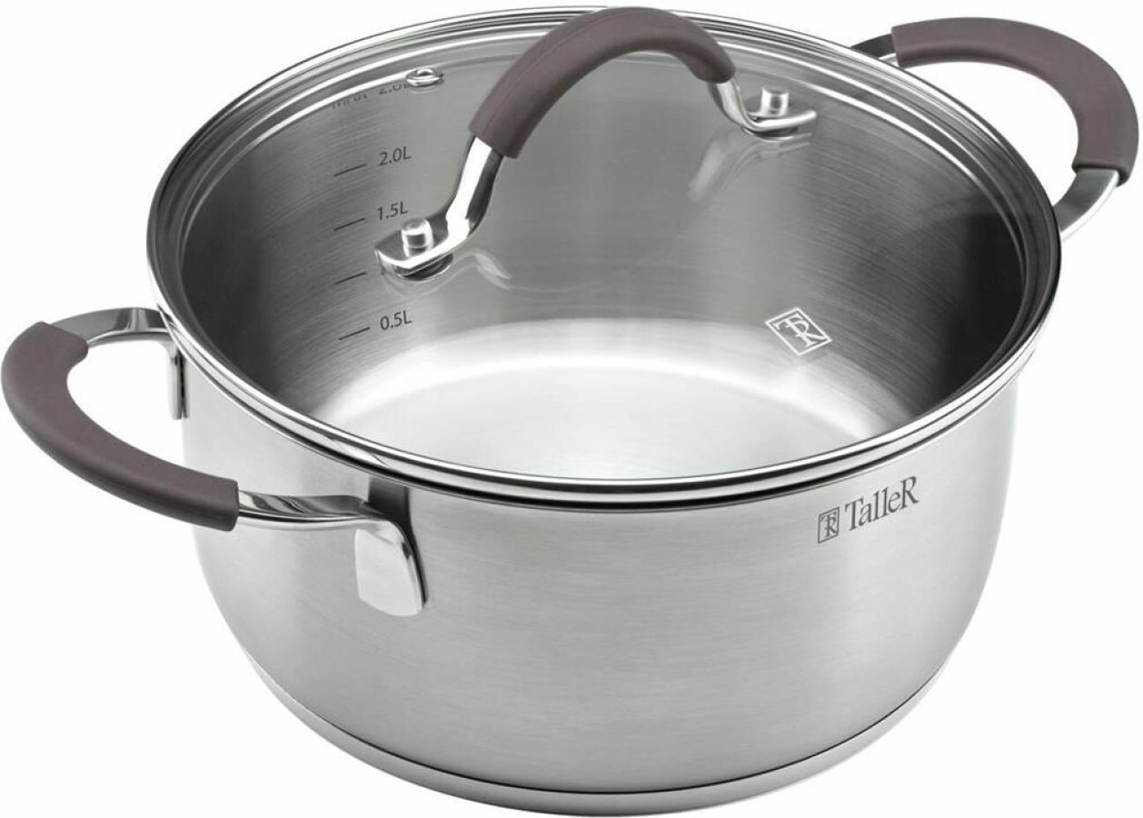 Комплектация: Кастрюля нержавеющая сталь 2 л TalleR TR-11022 , Совместимые плиты: Для электрических плит, Для стеклокерамических плит, Для индукционных плит, Для газовых плит, Для галогеновых конфорок , Вид блюда: Рыба, Суп, Мясо, Овощи, Птица , Размер крышки, см: 18 , Объем кастрюли, л: 1 - 3 л
