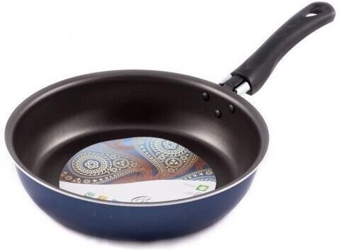 Сковорода Сатин диаметром 26 см простая, легкая и надежная посуда на каждый день по доступной цене. Европейское антипригарное покрытие внутри надежно защищает еду от пригорания, внешний слой декоративного покрытия также имеет антипригарные свойства, легко моется и долго сохраняет аккуратный вид и насыщенный синий цвет. Прочный корпус из штампованного алюминия с эргономичной бакелитовой ручкой делает использование сковороды удобным и безопасным.