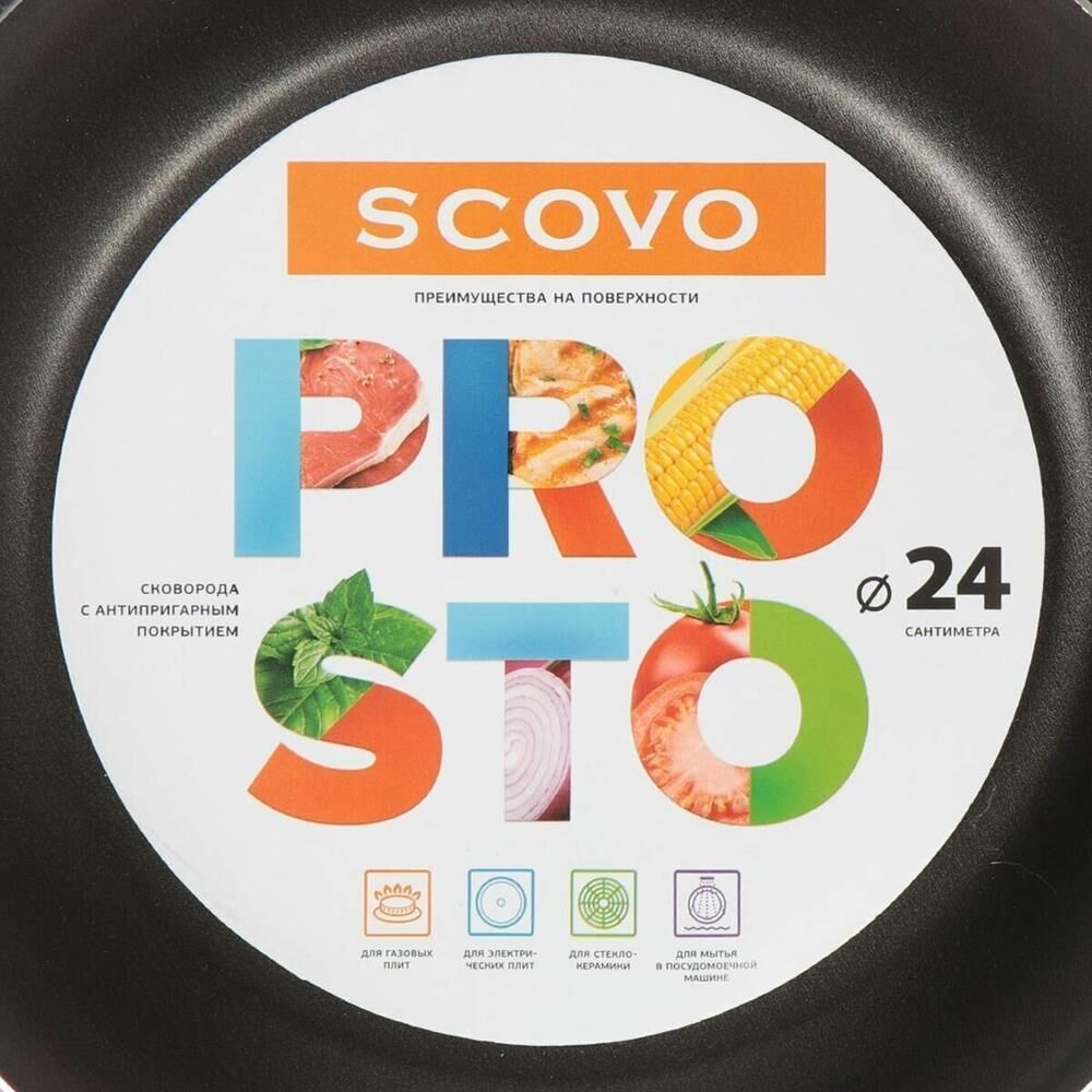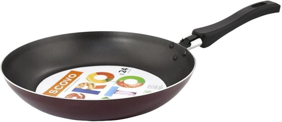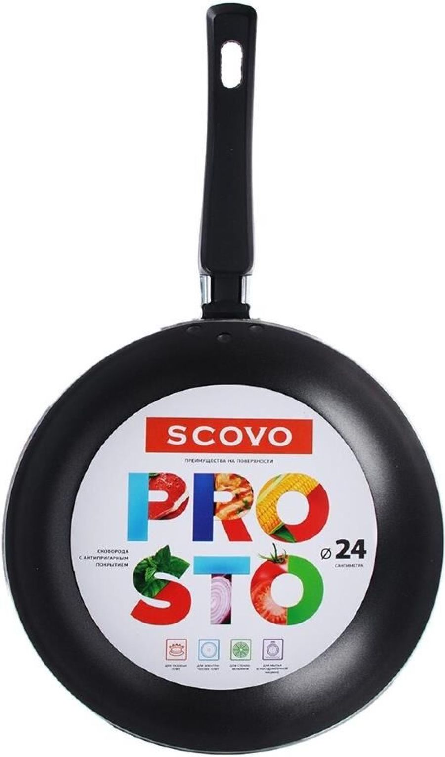 Сковорода Scovo Prosto СЭ-061 имеет оптимальный диаметр 24 см. Она идеально подходиткак для того, чтобы поджарить яичницу на одного человека, так и дляприготовления полноценного ужина для всей семьи. Корпус сковороды выполнен изалюминия, устойчивого к механическим повреждениям. Качественное антипригарноепокрытие исключает пригорание пищи, а удобная ручка эргономичной формы неперегревается во время готовки.