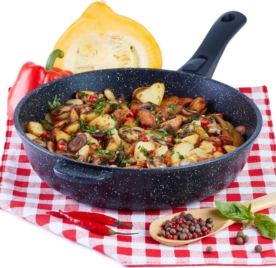 Размер, см: 28см Материал: литой алюминий Коллекция/серия: Гранит плюс Толщина дна: 6 Толщина стенок: 4.8 Источник тепла: Все виды плит, в том числе индукционная Тип упаковки: цветной рукав Внутреннее покрытие: антипригарное покрытие Greblon NewTec C2+ Внешнее покрытие: антипригарное покрытие Greblon NewTec C2+