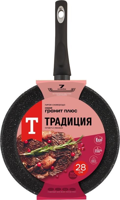 Размер, см: 28см Материал: литой алюминий Коллекция/серия: Гранит плюс Толщина дна: 6 Толщина стенок: 4.8 Источник тепла: Все виды плит, в том числе индукционная Тип упаковки: цветной рукав Внутреннее покрытие: антипригарное покрытие Greblon NewTec C2+ Внешнее покрытие: антипригарное покрытие Greblon NewTec C2+