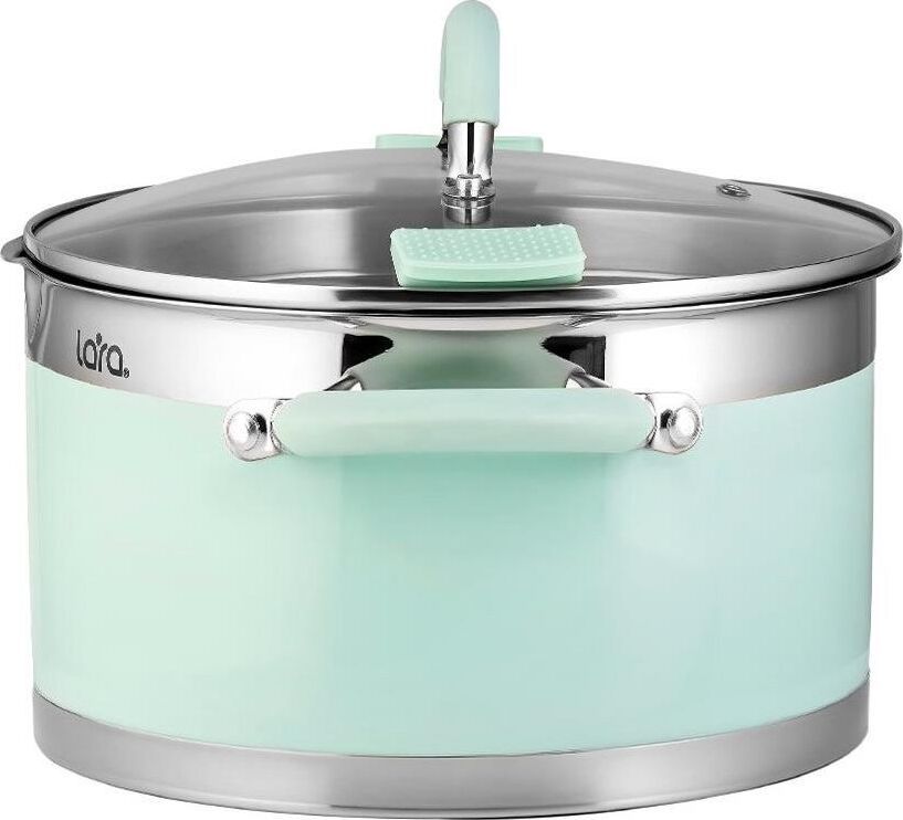 Материал - Нержавеющая сталь AISI 201. Полировка Комбинированная. Дно - Индукционное, Капсулированное. Мытье - Ручная мойка. Использование в духовке Нет. Отверстия для слива воды - 3 мм и 6 мм, сливной носик. Ручки - Нержавеющая сталь, Полые, Силиконовая отделка