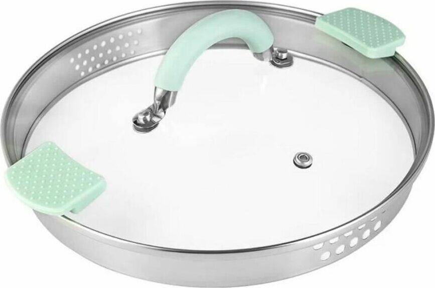 уникальная конструкция крышки с силиконовыми накладками и отверстиями диаметром 3 и 6 мм для быстрого слива воды; материал крышки: стекло