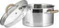 Материал - Нержавеющая сталь AISI 201. Полировка Комбинированная. Дно - Индукционное, Капсулированное. Мытье - В посудомоечной машине, Ручная мойка. Использование в духовке Нет. Отверстия для слива воды - 3 мм и 6 мм, сливной носик. Ручки - Нержавеющая сталь, Полые, Силиконовая отделка