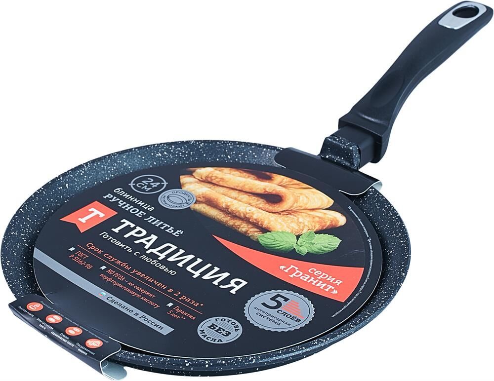 Объем, л./размер, см: 24см Материал: литой алюминий Коллекция/серия: Гранит Торговая марка: Традиция Толщина дна: 4 Толщина стенок: 3 Источник тепла: Все виды плит, кроме индукционной Тип упаковки: цветной рукав Внутреннее покрытие: антипригарное покрытие Pfluon Внешнее покрытие: антипригарное покрытие Pfluon
