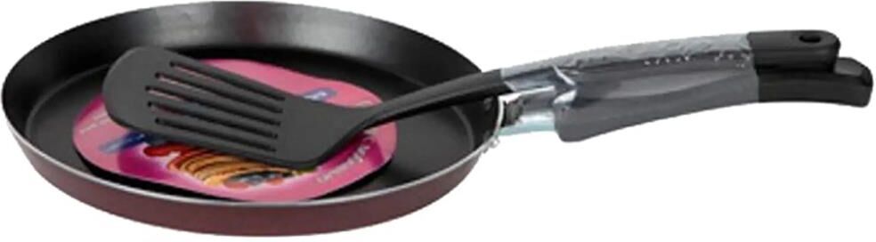 Легкая и удобная блинница с антипригарным покрытием. Прочный алюминиевый корпус из штампованного металла быстро нагревается и равномерно обжаривает блинчики без пригорания и прилипания. Низкие бортики максимально облегчают процесс переворачивания: тесто получится ровным и аккуратным. Антипригарное покрытие протестировано на износостойкость, не содержит вредных примесей и абсолютно безопасно. Внешнее декоративное покрытие легко моется и долго сохраняет свой насыщенный цвет. Модель выпускается в бордовом цвете, подходит для газовых и электрических плит. Высота борта сковороды 2 см Толщина дна (мм) 1.8 мм Высота упаковки 9 см Диаметр предмета 22 см Длина упаковки 33 см Материал посуды алюминий Назначение посуды для приготовления Ширина упаковки 45 см Внутреннее покрытие антипригарное Форма изделия круг Толщина стенок 1.8 мм