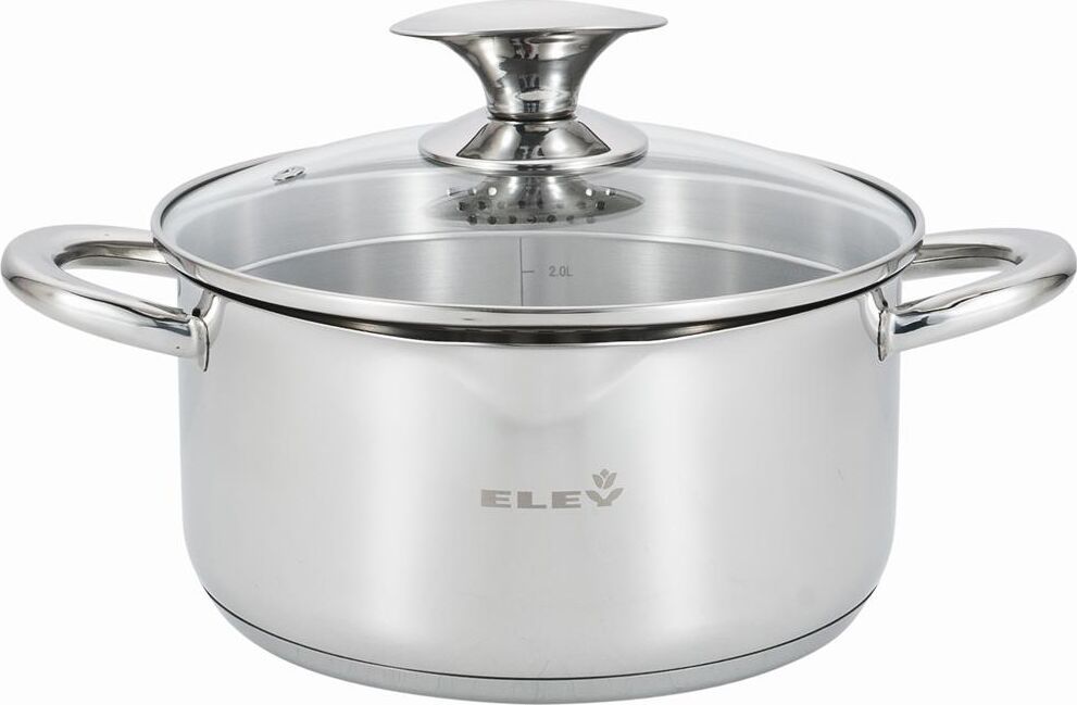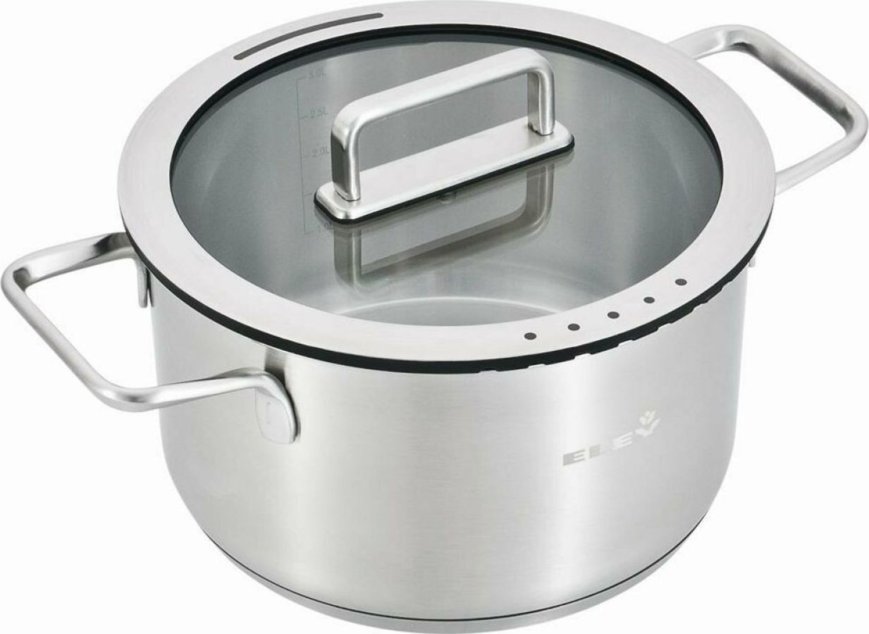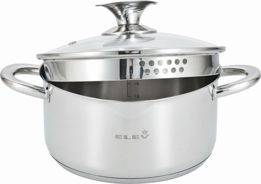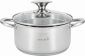 Кастрюля идет в индивидуальной коробке. Форма кастрюли - прямая форма, срезанный край с двумя заливными горловинами. Боковые ручки и ручкодержатель на крышке из нержавеющей стали,полые. Крышка из закаленного прозрачного стекла с двумя отверстиями для сита. корпус из нержавеющей стали 304 (18/8) толщиной 0,6 мм, дно: 1 мм Alu + 1 мм железо + 1 мм Alu + 18/0ss защитная пленка для дна индукционной плиты. Зеркальная полировка снаружи и внутри. Кастрюля предназначена для всех тип плит.