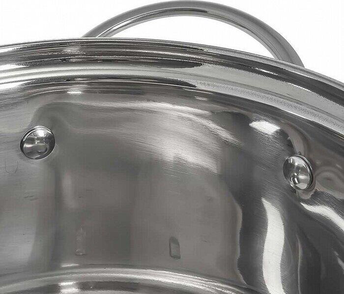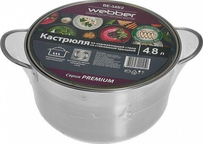 Параметры Объем 4,8 л Диаметр 22 см Высота 12,5 см Толщина стали 0,4 мм Описание Кастрюля из высококачественной нержавеющей стали со стеклянной крышкой Специальная форма, исключающая скопление остатков пищи и жира Эргономичный дизайн Индукционное капсулированное дно Быстрый нагрев пищи, длительное удержание тепла Минимальные потери минеральных веществ, витаминов и вкусовых качеств Подходит для использования на всех типах кухонных плит, включая индукционные Подходит для мытья в посудомоечной машине Серия: Premium Упаковка: термоусадочная пленка с цветным вкладышем