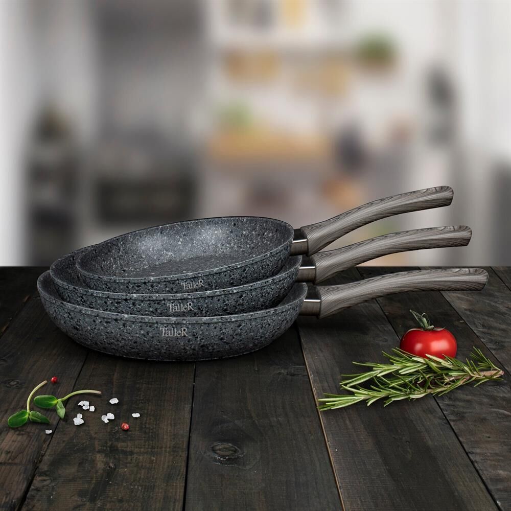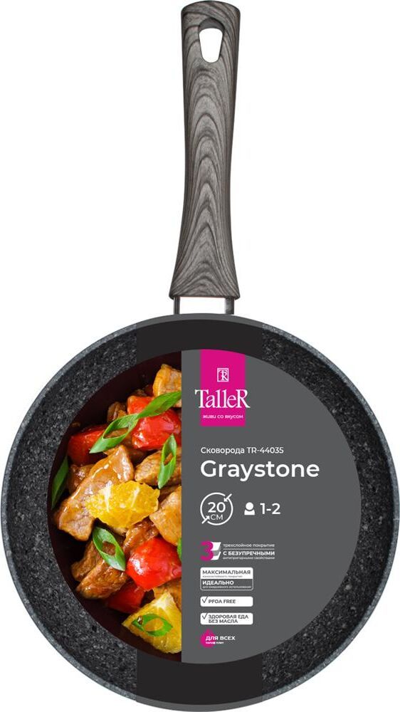 Сковорода "Graystone", диаметр 20 см, без крышки, Материал: кованый алюминий с антипригарным покрытием Толщина дна 3.3 мм, толщина стенки 2,5 мм, высота сковороды 4,3 см, внешний диаметр дна 15,8 см Бакелитовая ручка с покрытием "soft touch". Рекомендации