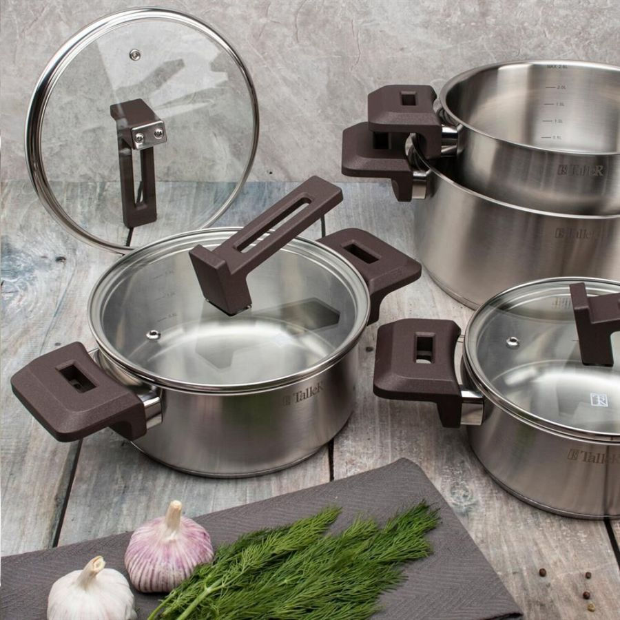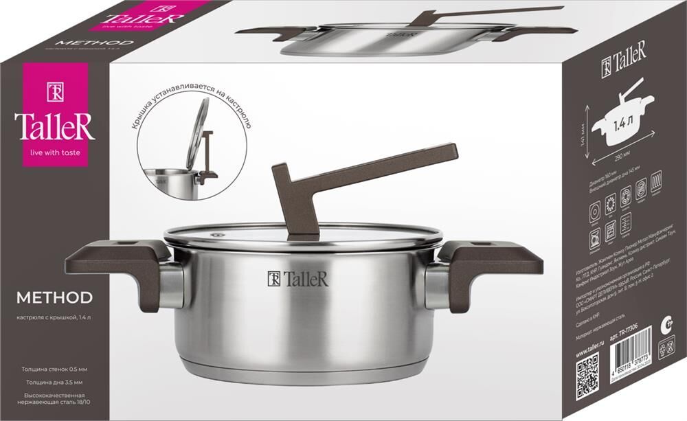 Кастрюля 1,4л с крышкой, диаметр 16 см, высота без крышки 7,8 см, внешний диаметр дна 14,5 см ,ширина с ручками 29 см. Толщина стенок 0.5 мм, толщина дна 3,5 мм Материал: нержавеющая сталь Подходит для всех типов плит, в т.ч. индукционной Можно мыть в