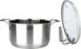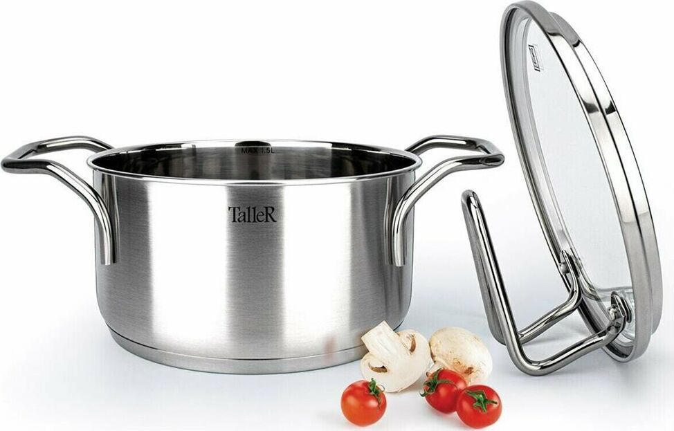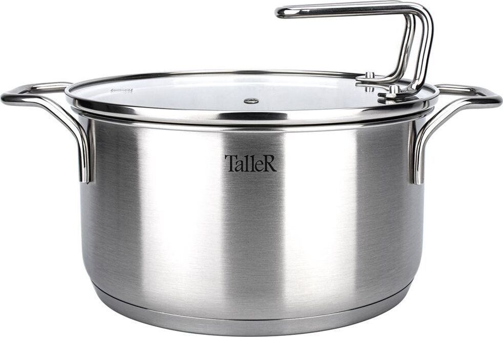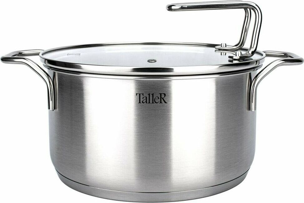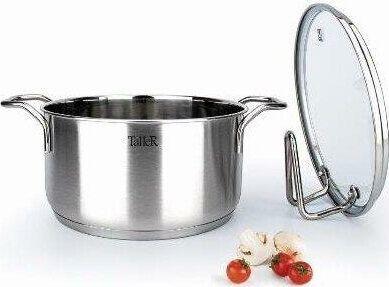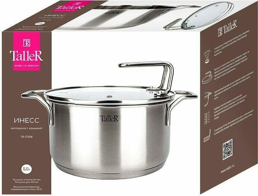 Кастрюля "Инесс" Объем 5 л. Материал: нержавеющая сталь 18/10 Крышка из закаленного стекла со специальным отверстием для выхода пара Удобные отметки литража на внутренней поверхности посуды Капсулированное дно с алюминиевой вставкой обеспечивает идеальное