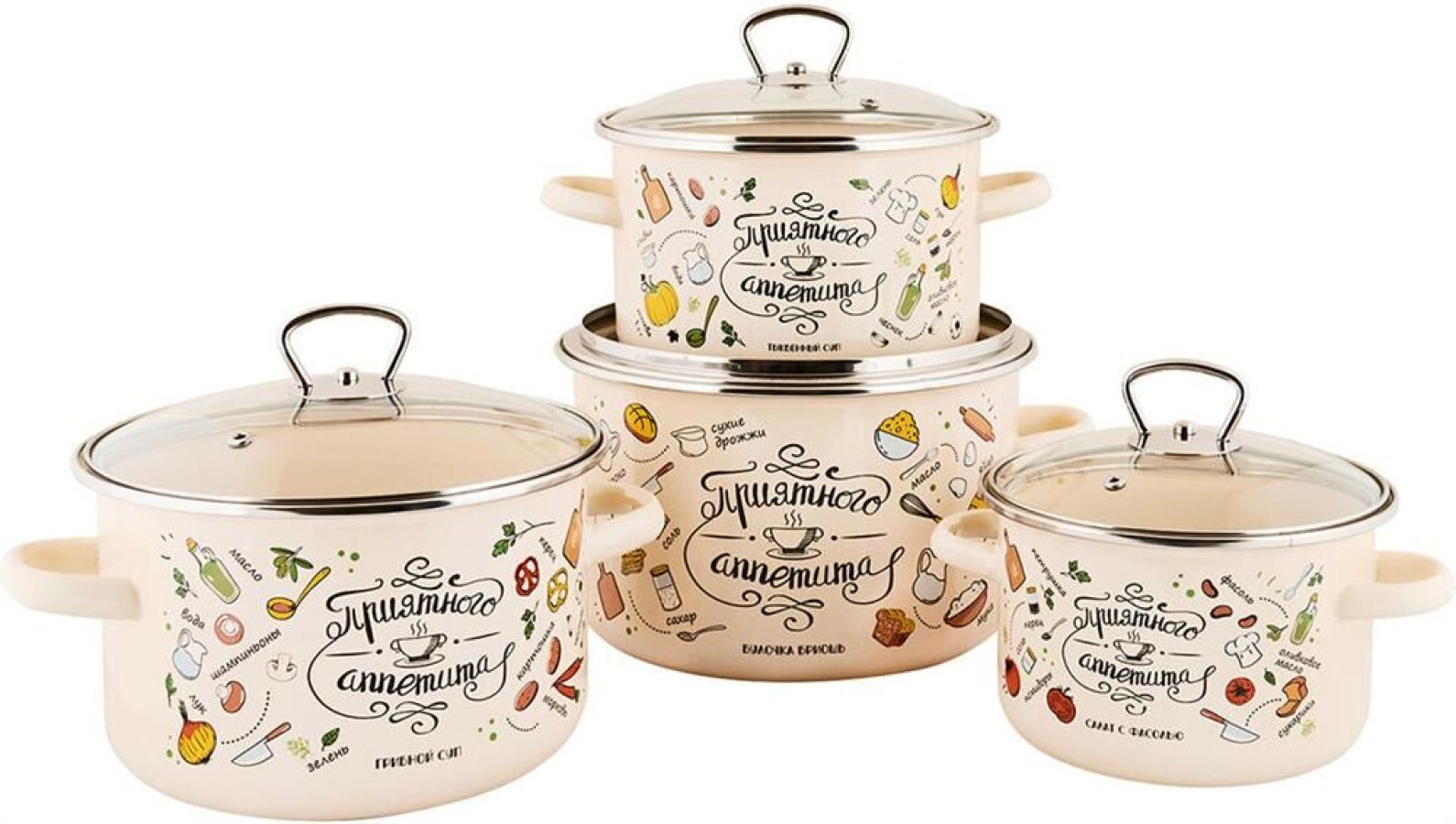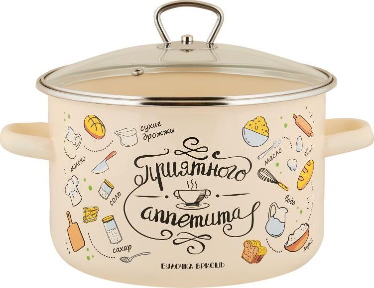с нержавеющим ободком Объем, л./размер, см: 5.5 л Материал: эмалированная сталь Толщина дна: 0.8 Толщина стенок: 0.8 Источник тепла: Все виды плит Крышка: стеклянная Внутреннее покрытие: эмаль Внешнее покрытие: эмаль