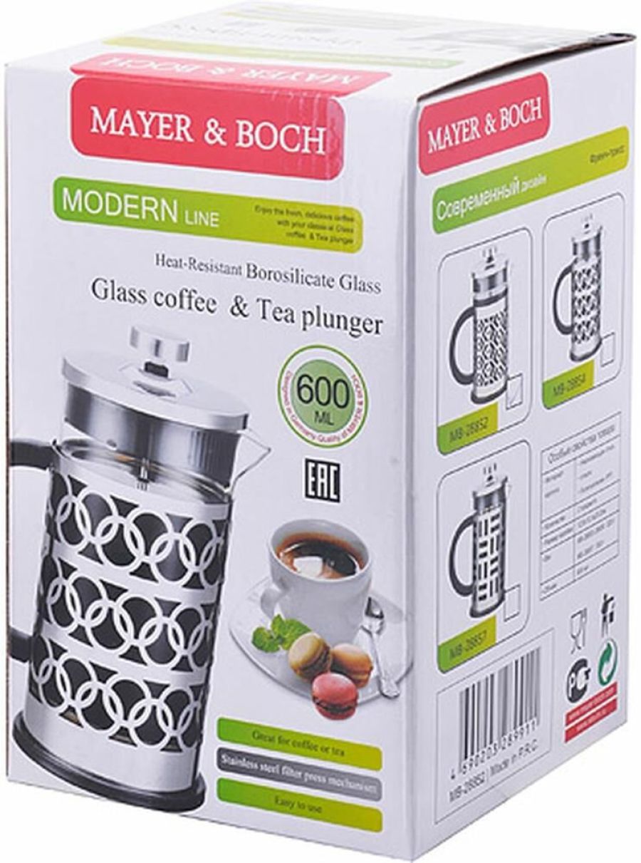 Чайник заварочный Френч-Пресс MB (х24). Материал: нержавеющая сталь, стекло. Объем: 600 мл. Диаметр колбы: 8,5 см. Диаметр корпуса 9,4 см. Высота 18,5 см. Вес: 550 г. Размер упаковки: 12,5 х 12,5 х 20,2 см. Страна производитель: Китай.