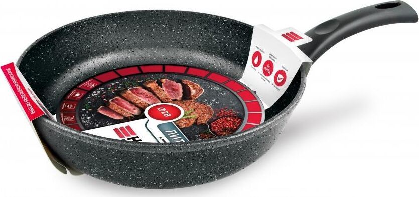Корпус сковороды из литого алюминия не подвержен деформации (в отличие от штампованного) и гарантирует равномерный нагрев. Сковорода подходит для разогрева пищи, обжаривания овощной нарезки, приготовления легких и быстрых блюд (например, завтраков). Благодаря качественному антипригарному покрытию позволяет избежать пригорания продуктов даже при готовке без масла. А значит, за ней просто ухаживать – легко моется обычными жидкими средствами для мытья посуды. Инновационная антипригарная система. Покрытие многослойное на водно-кремниевой основе, не содержит PFOA (перфтороктановую кислоту), безопасно для контакта с пищевыми продуктами. Тип покрытия Антипригарное Диаметр изделия 28 см Диаметр дна 22 см Особенности Можно использовать в посудомоечной машине, Индивидуальная маркировка Толщина дна 4 мм Толщина бортов 2.9 мм Материал Литой алюминий Плита Газовая, Электрическая, Стеклокерамическая Высота бортов 70 мм Вес 1.06 кг