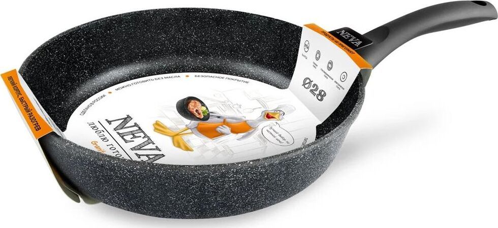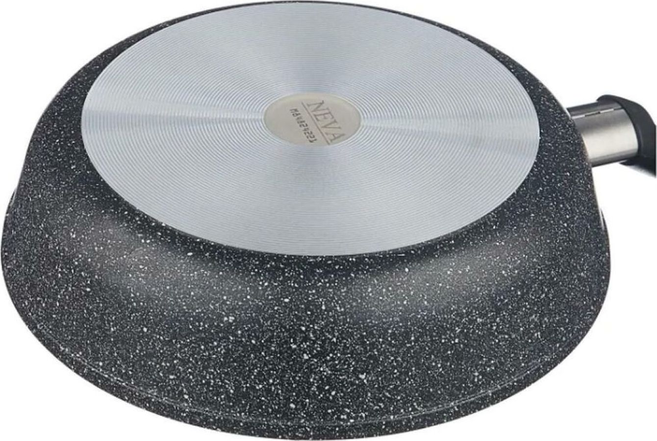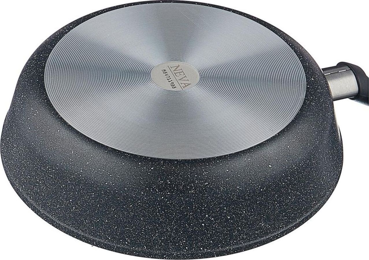 Благодаря толстому дну пища прогревается наиболее равномерно. У вас не будет ситуаций, как с тонким дном, когда при жарке большого куска мяса поверхность куска уже подгорает, а внутри мясо еще сырое. Утолщенное дно является фильтром от больших и резких поступлений тепла, медленно аккумулирует его и равномерно передает в пищу. При производстве сковород Neva используются антипригарные покрытия на водной основе. Материал алюминий Антипригарное покрытие антипригарное на водной основе Совместимость с индукционными плитами нет Особенности мытье в посудомоечной машине Размеры Толщина дна 4 мм Толщина стенок 2.9 мм Вес 1.08 кг