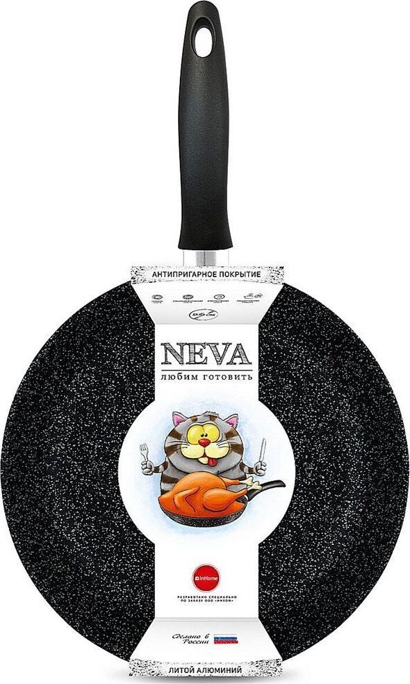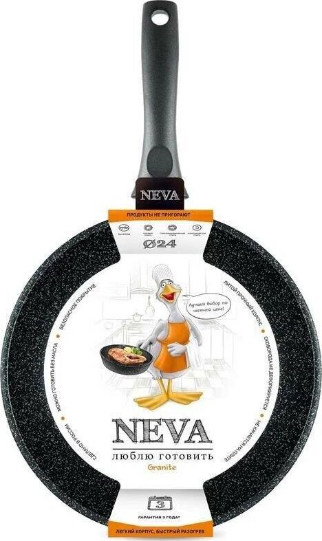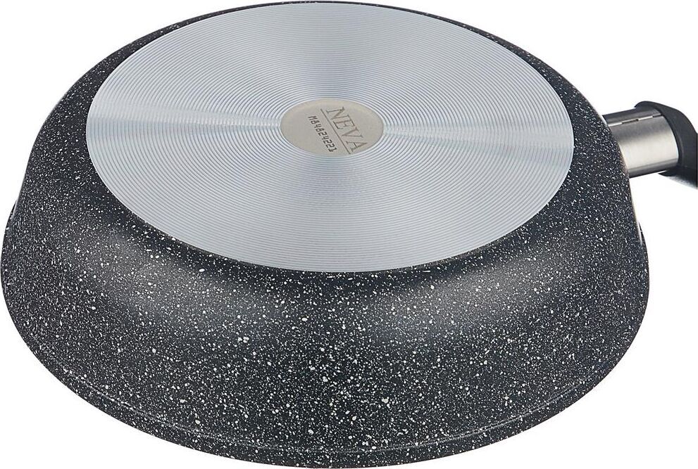 Благодаря толстому дну пища прогревается наиболее равномерно. У вас не будет ситуаций, как с тонким дном, когда при жарке большого куска мяса поверхность куска уже подгорает, а внутри мясо еще сырое. Утолщенное дно является фильтром от больших и резких поступлений тепла, медленно аккумулирует его и равномерно передает в пищу. При производстве сковород Neva используются антипригарные покрытия на водной основе. Размеры Диаметр, см 24 Высота стенок, мм 60 Толщина стенок, мм 3 Толщина дна, мм 4 Вес, кг 0.8 Материалы и цвет Материал сковороды алюминий Материал ручек бакелит Внутреннее покрытие антипригарное Цвет черный Особенности Подходит для индукционных плит Нет Можно мыть в посудомоечной машине Да