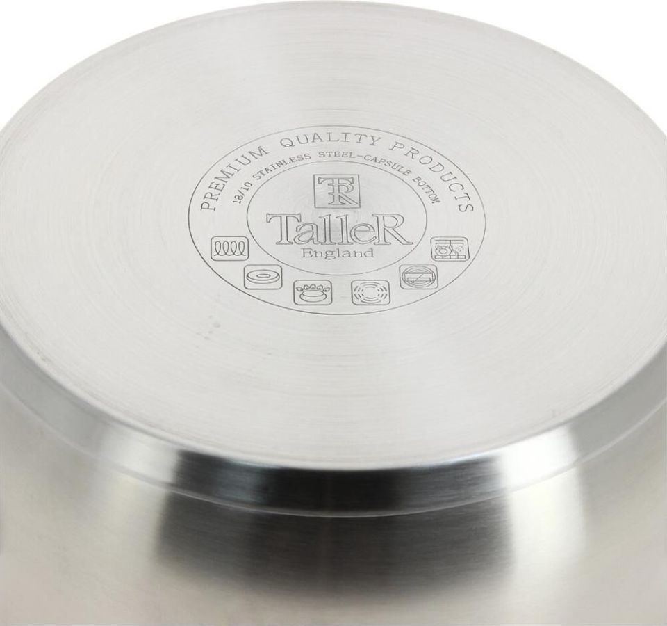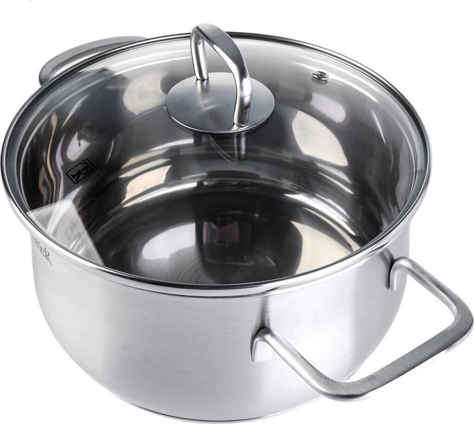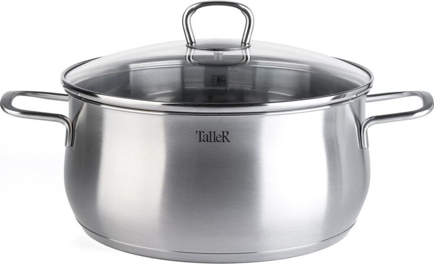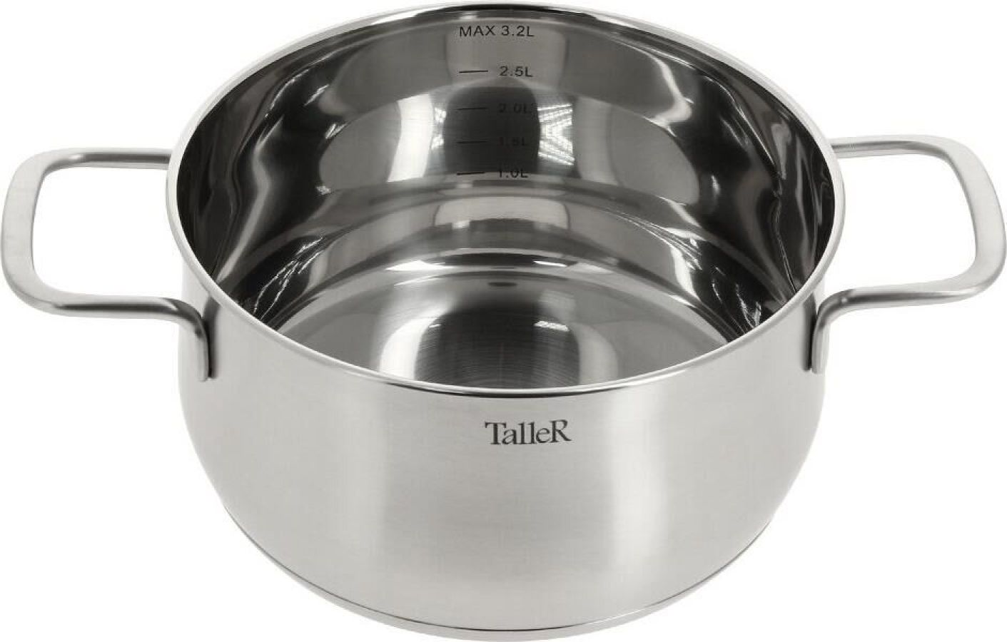 Набор посуды "Бригг", 6 пр Состав: 18*9 кастрюля с крышкой (2.2L), 20*10.5 кастрюля с крышкой (3.2L), 24*11.5 кастрюля с крышкой (5,2L) Толщина стенки — 0,6 мм, толщина дна — 2,8 мм. Полировка матовая снаружи, зеркальная внутри. Крышки из жаропрочного