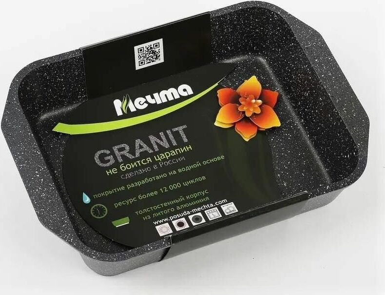 Противень 33*22 см. с антипригарным покрытием серии "Гранит" Можно использовать в посудомоечной машине.