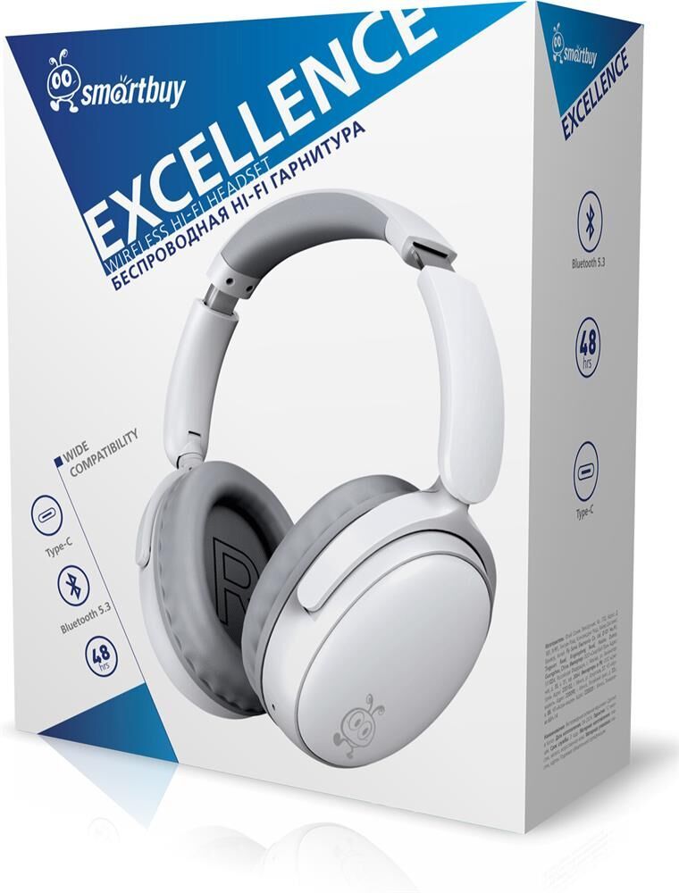 Диаметр динамиков 40мм Диапазон воспроизводимых частот 18 – 20000 Гц Сопротивление 29 Ом Чувствительность микрофона 38 дБ Подключение беспроводное Bluetooth 5.3 Ёмкость встроенной батареи 400мАч Максимальное время работы 48 часов Время зарядки не более 3х часов , зарядный кабель Type-C в комплекте Вес: 235г Источник: https://mm61.ru/p/1415172852-garnitura-bluetooth-polnorazmernaya-smartbuy-excellence-skladnaya-zaryadka-type-c-belaya-sbh913/